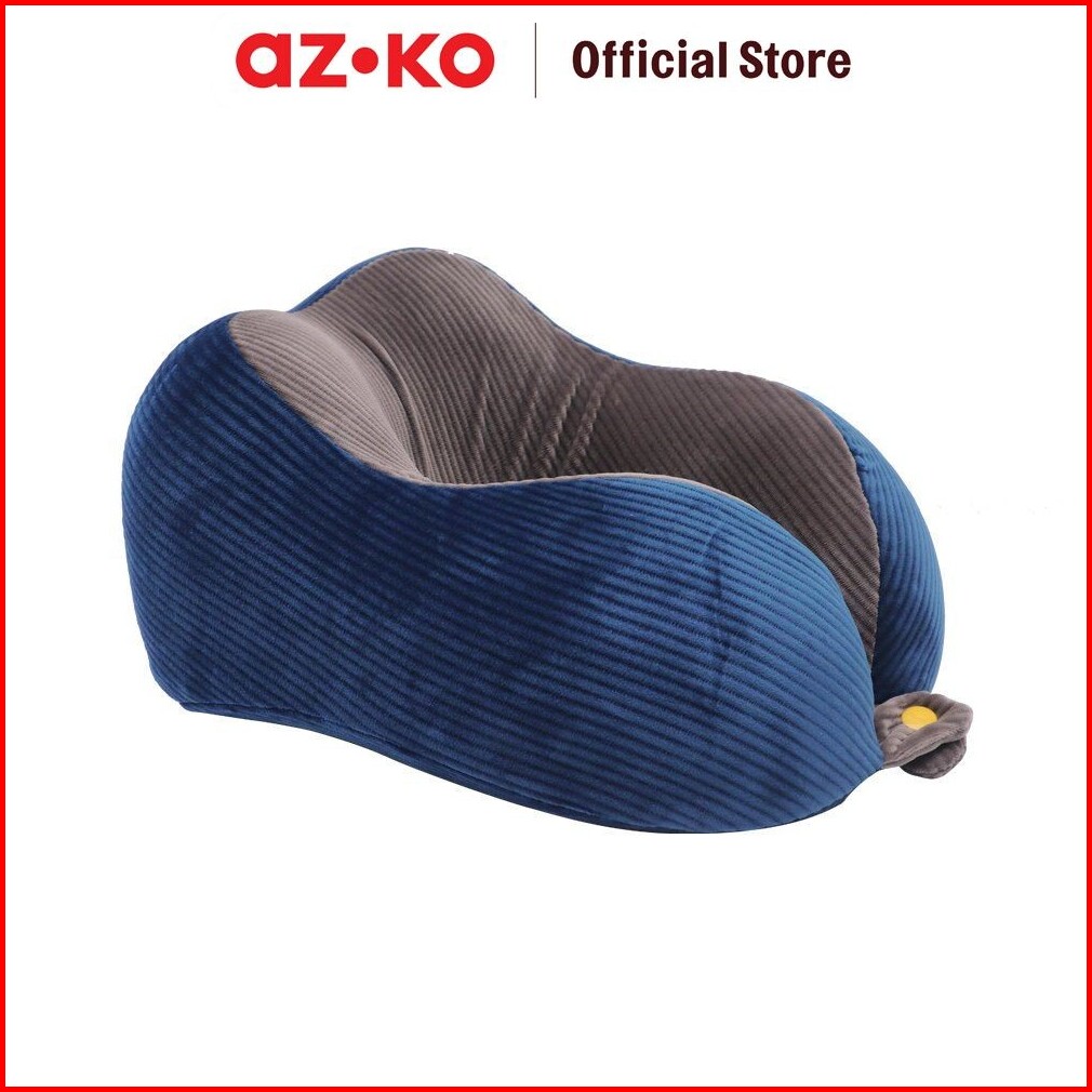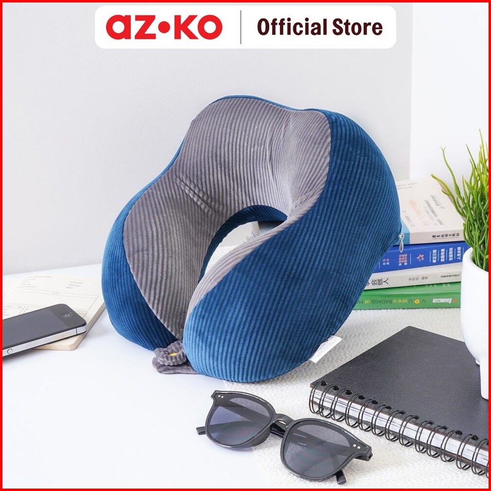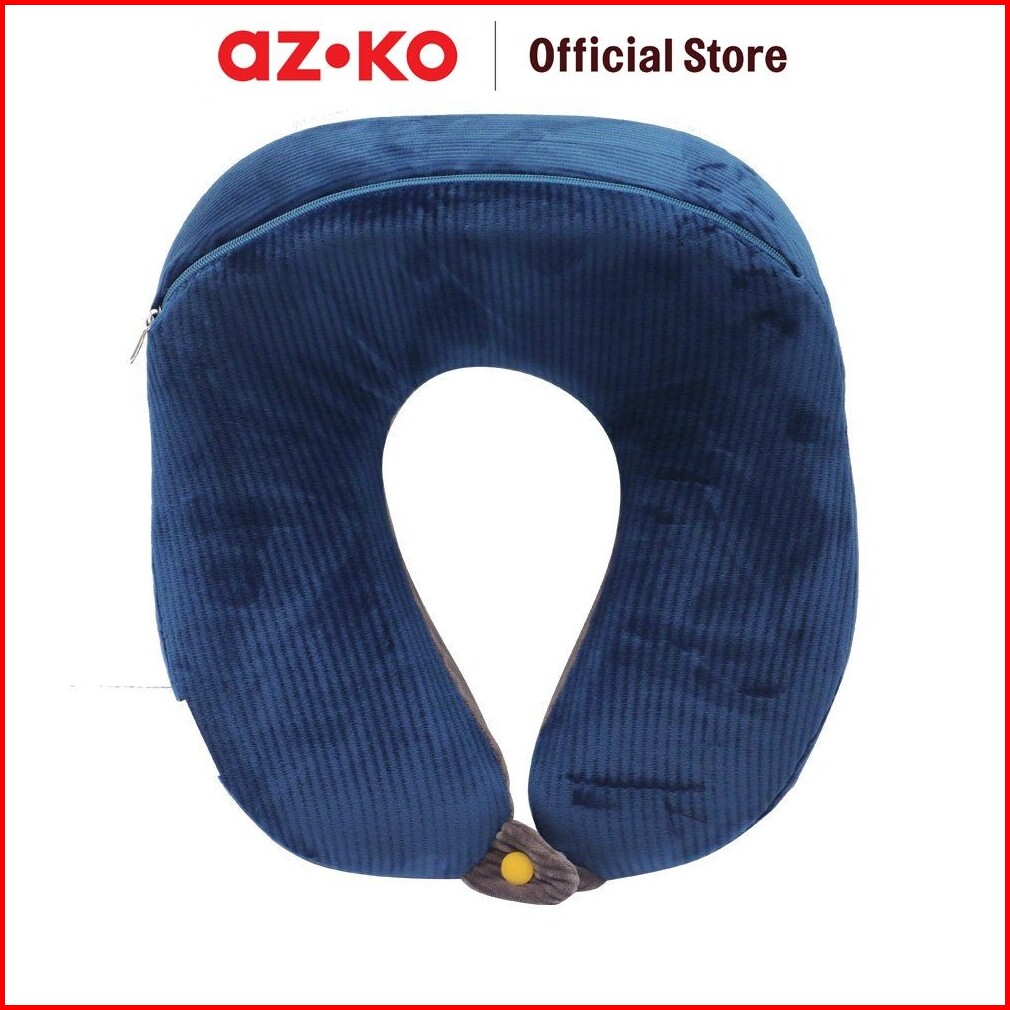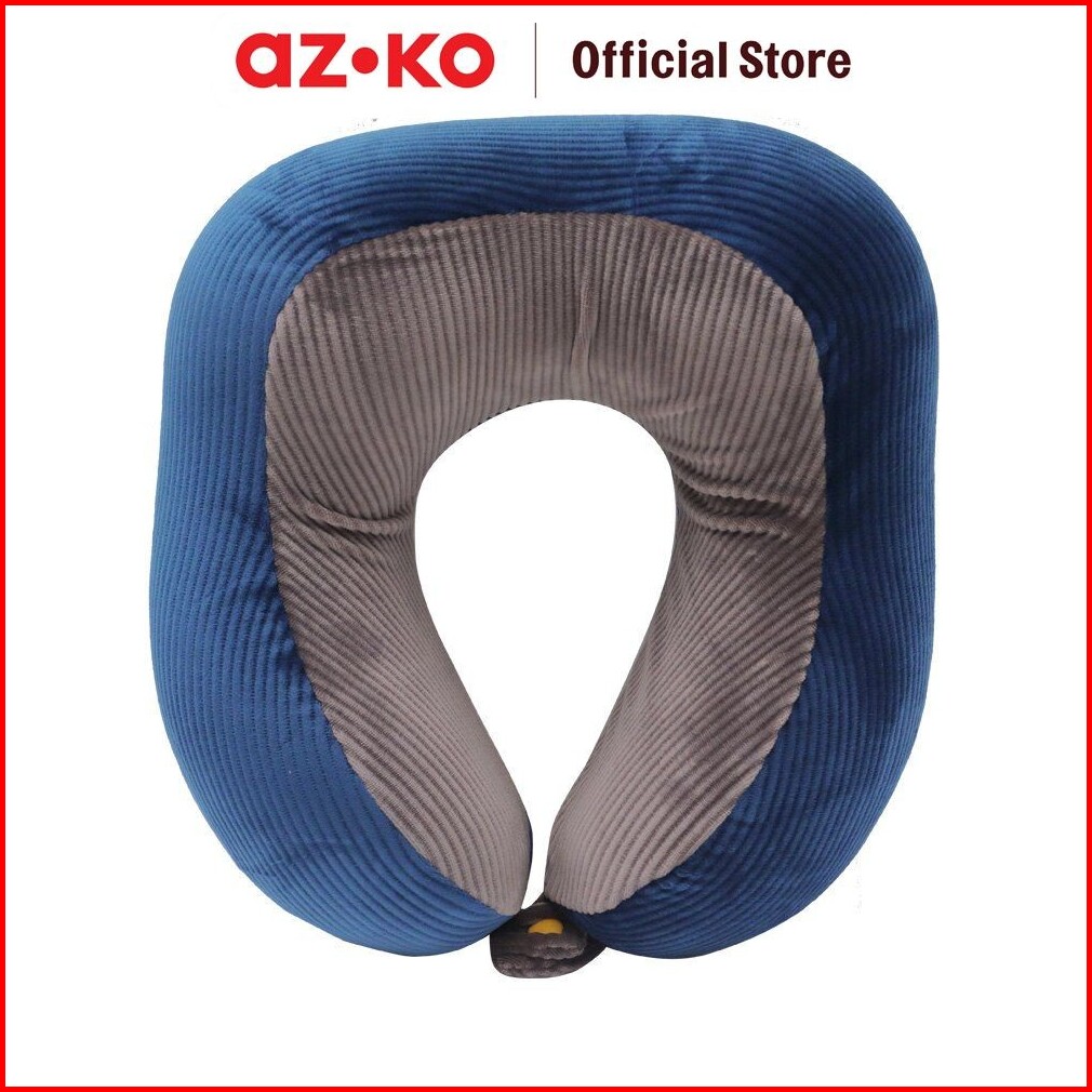 Azko Passport Bantal Leher Memory Foam Y22 - Biru Abu-abu Neck Cushion Travel Bantal Mobil U-neck Car Pillow Sandaran Le