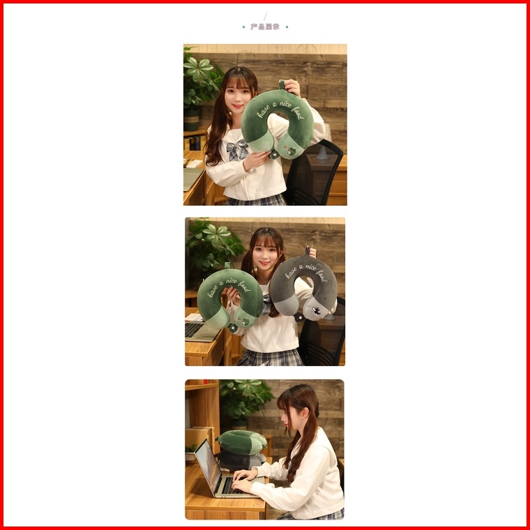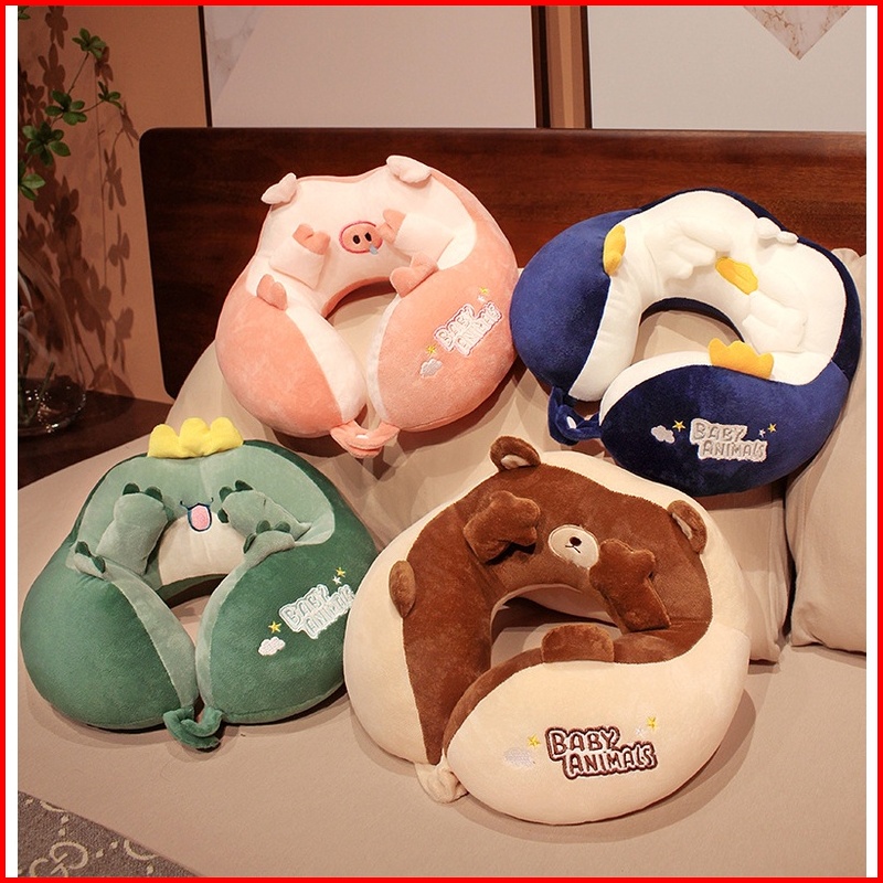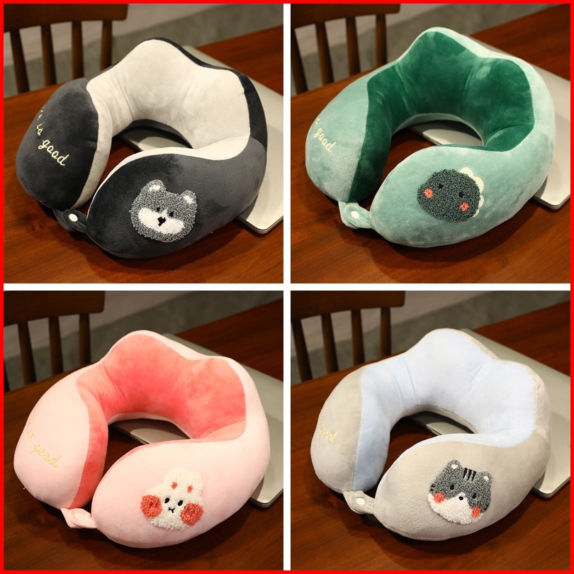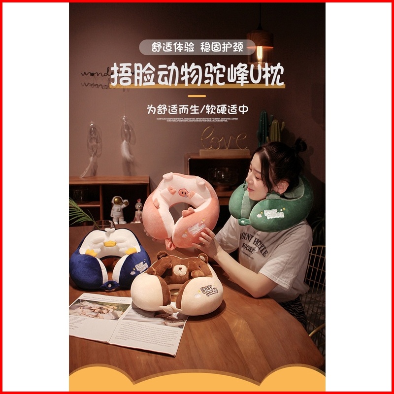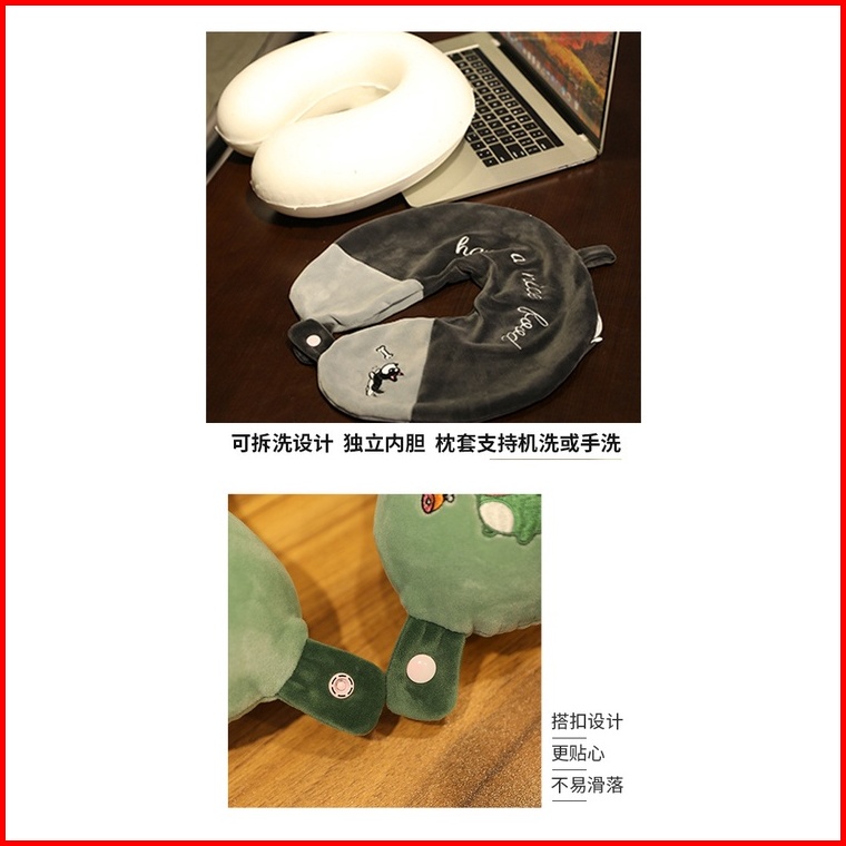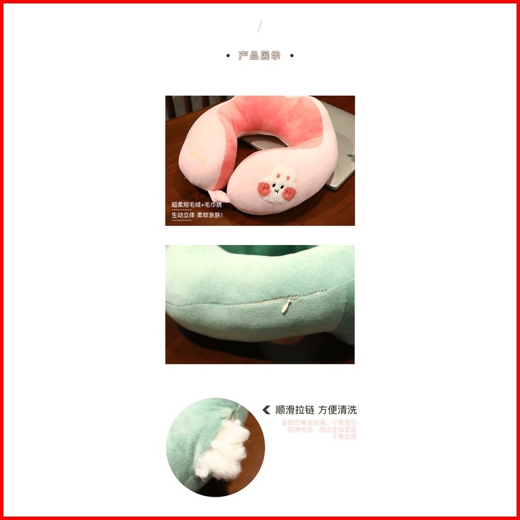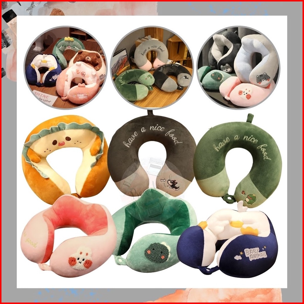 Bantal Leher Premium Travel Neck Pillow Bantalan Leher Kepala Bentuk U-shape Model Kartun Lucu Untuk Travel Perjalanan L