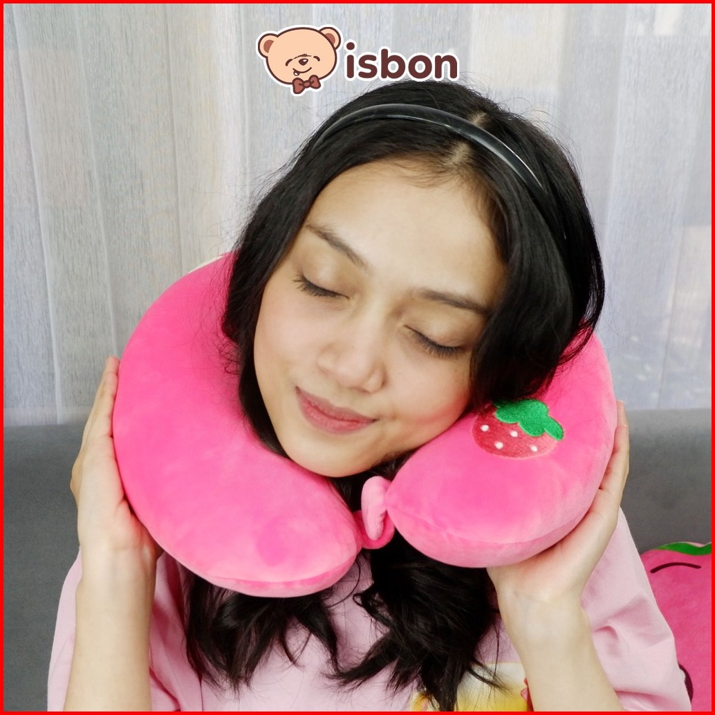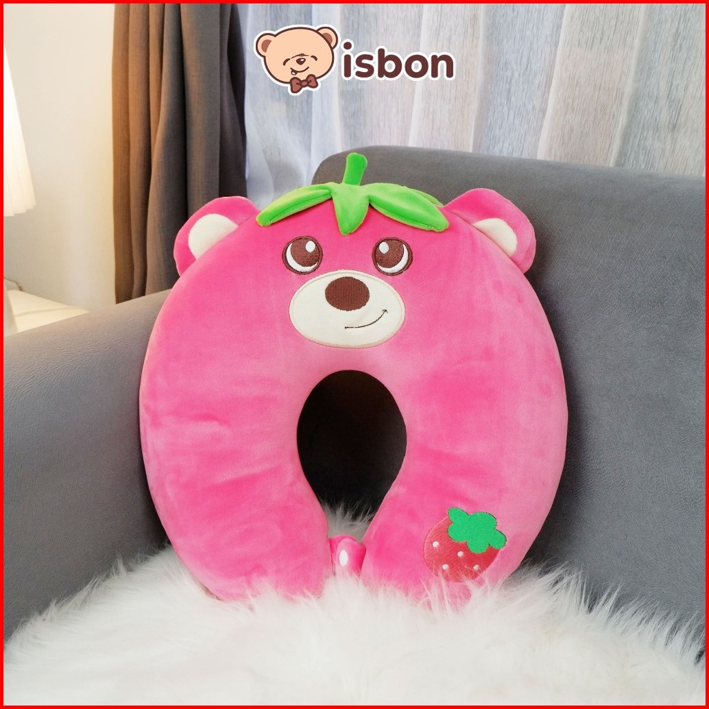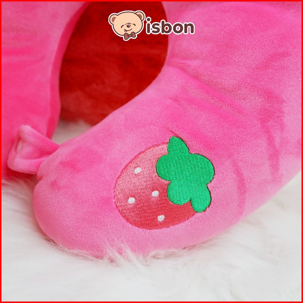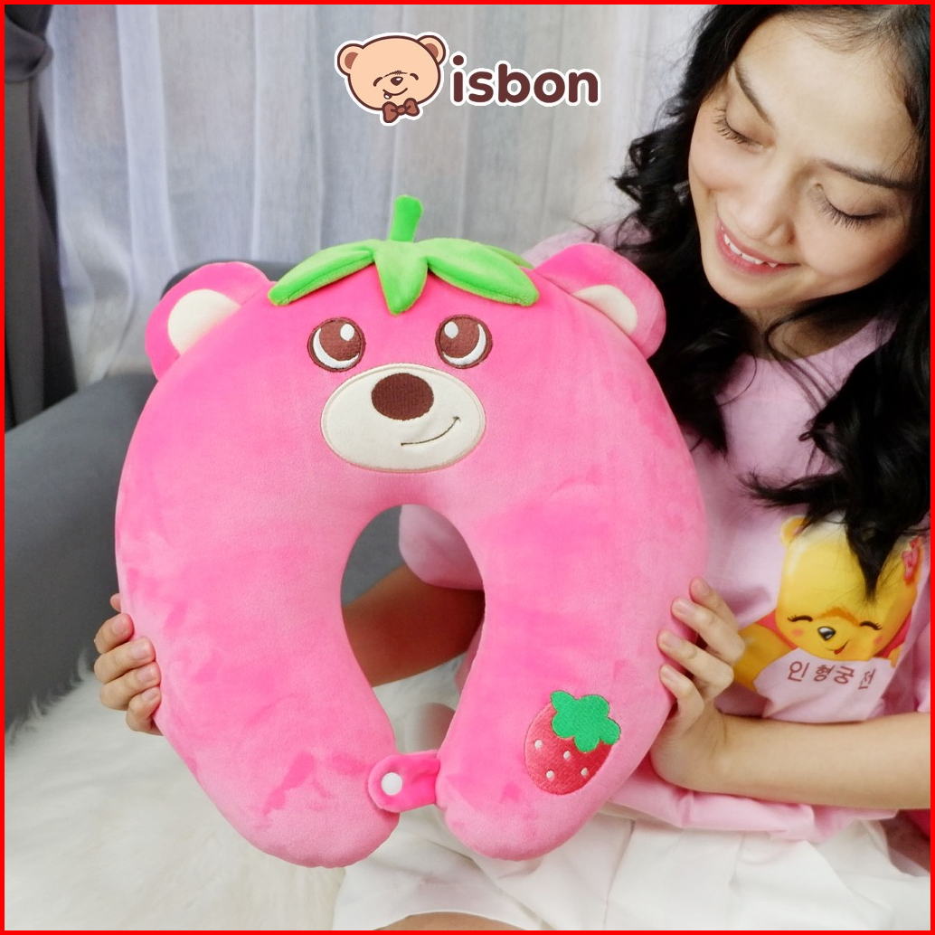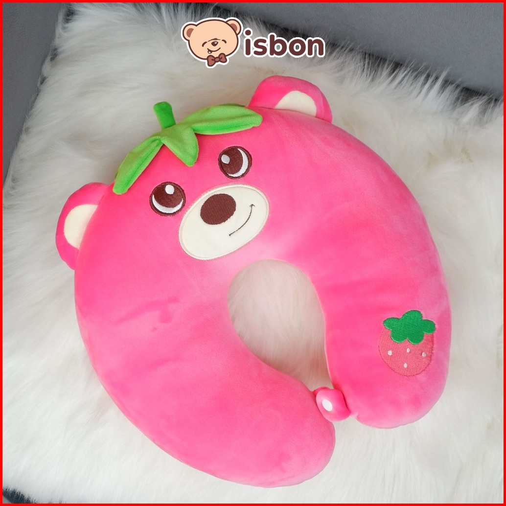 Istana Boneka Bantal Leher Dewasa Berry Beruang Pink Travel Neckrest Bordir Nyaman Untuk Traveling Jarak Jauh Dengan Kan