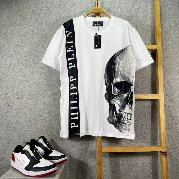 Kaos PHILIPP PLEIN HALF FACE PUTIH T-shirt Oversize pria/wanita