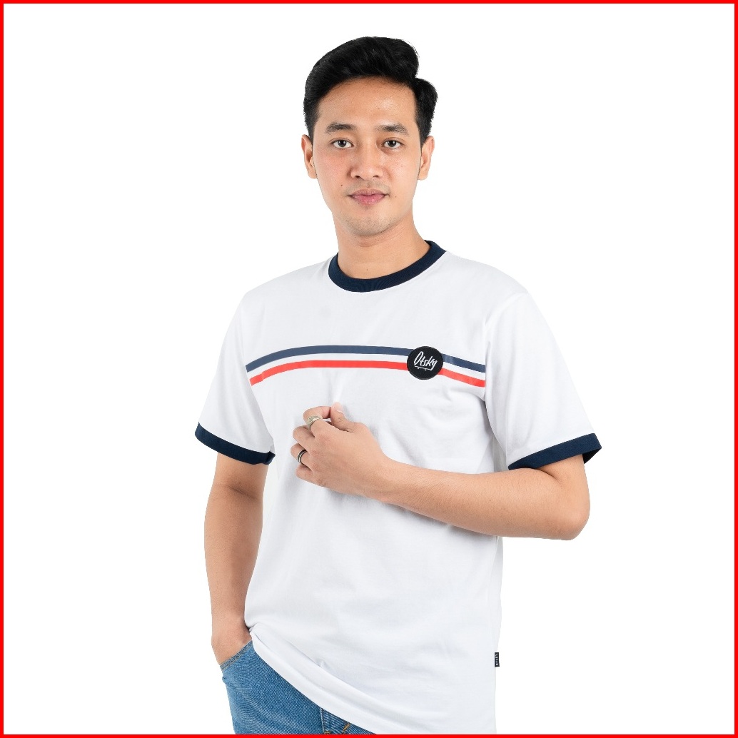 Otsky Kaos Pria Small Logo Two Strip Holy X Rht020 Katun Pendek