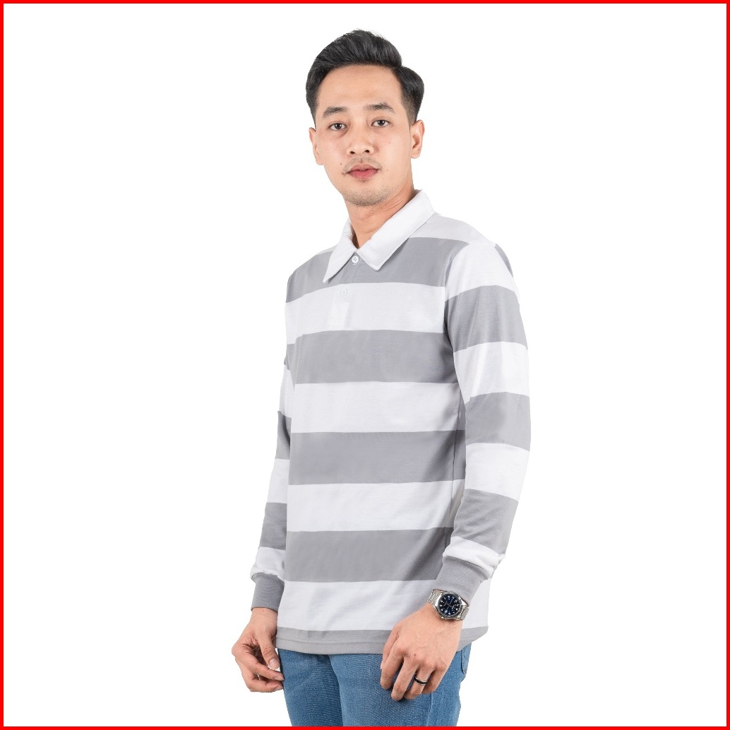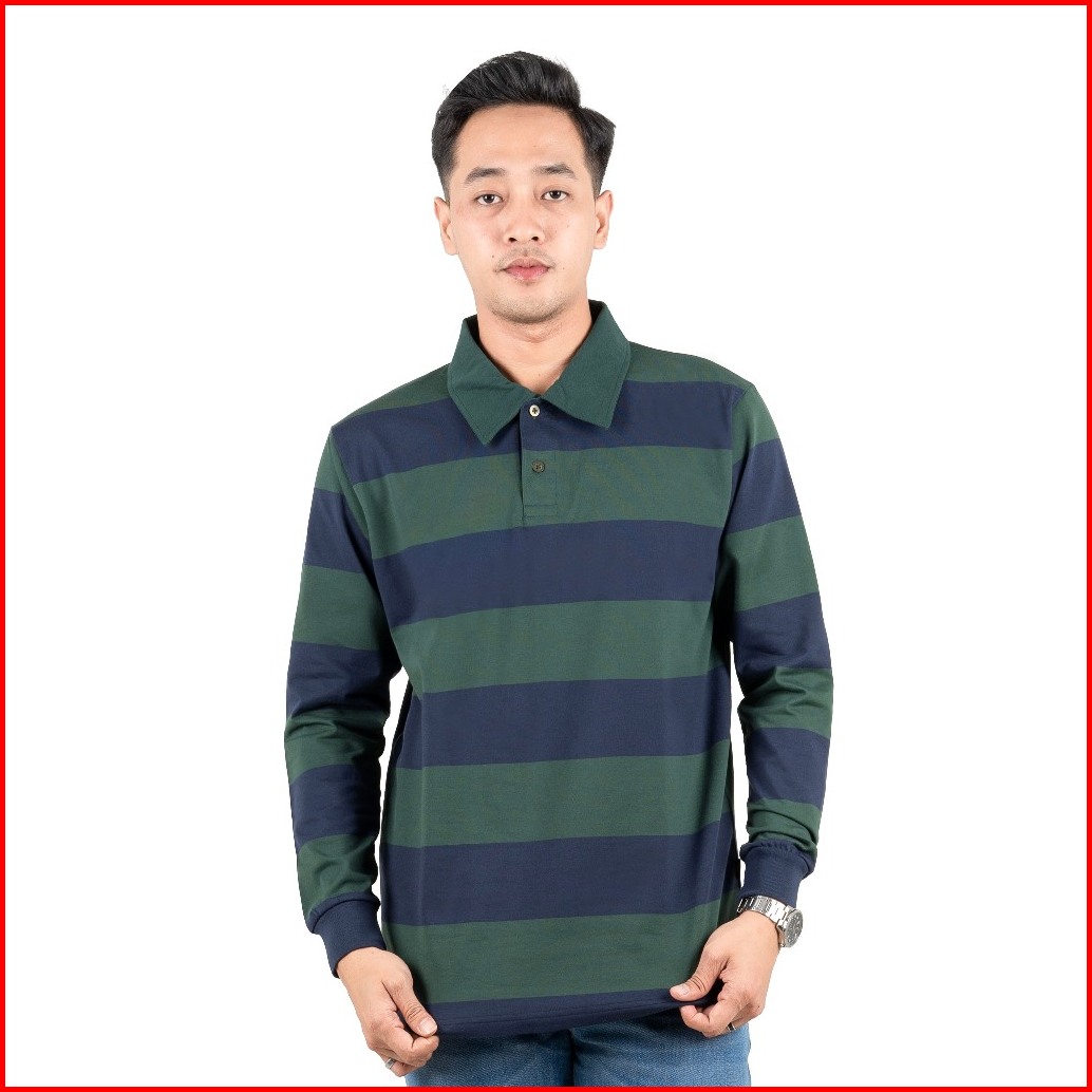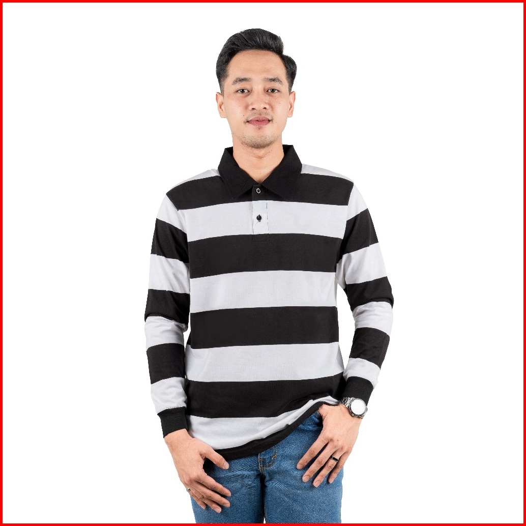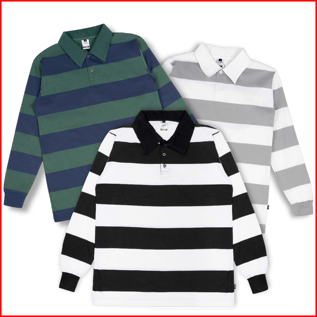 Otsky Kaos Pria Rugby Big Stripe Cotton Combed 24s Kerah