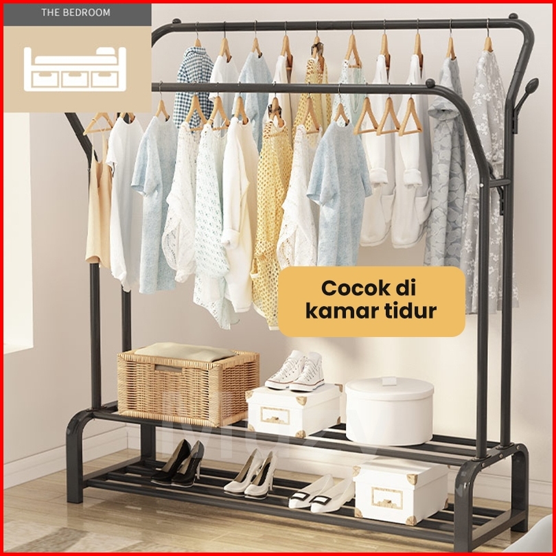 Muzy Gantungan Pakaian Stand Hanger Rak Baju Rak Windproof Clothes Stand Hanger Double Rak Hsh132