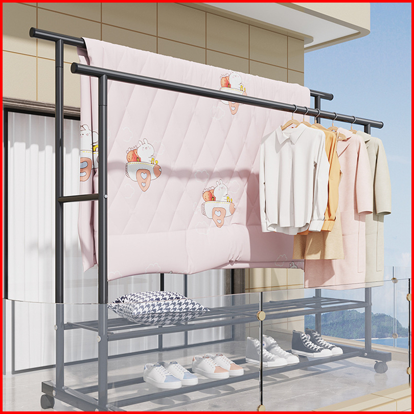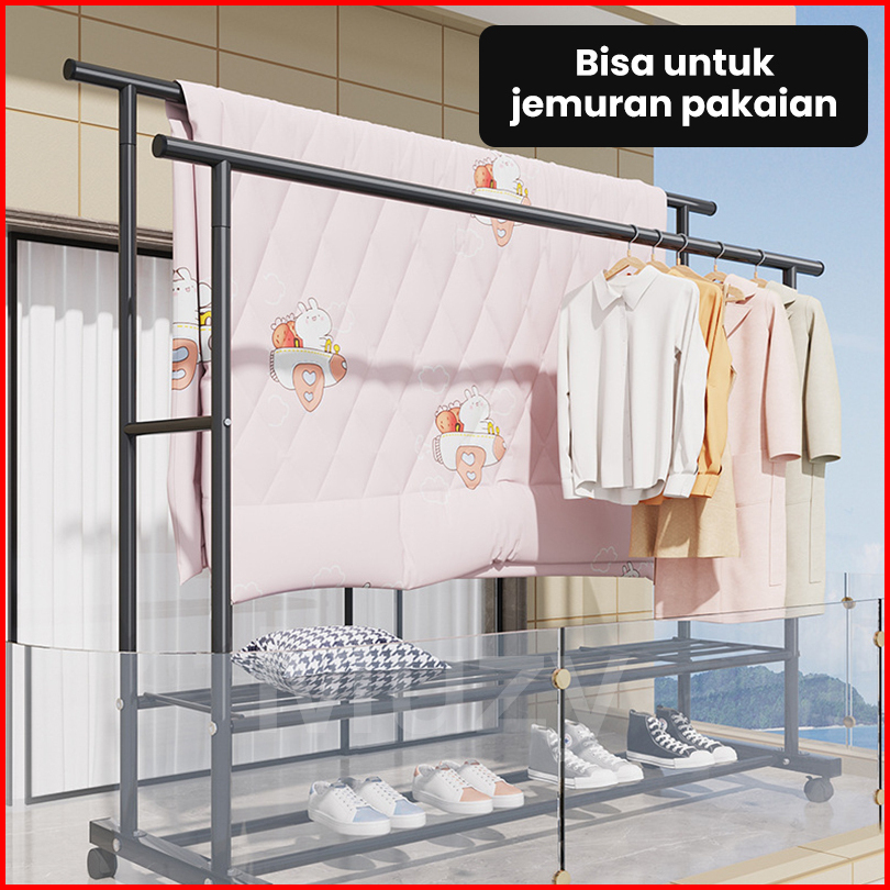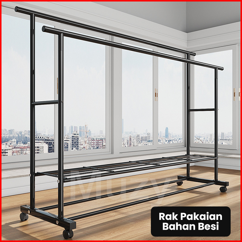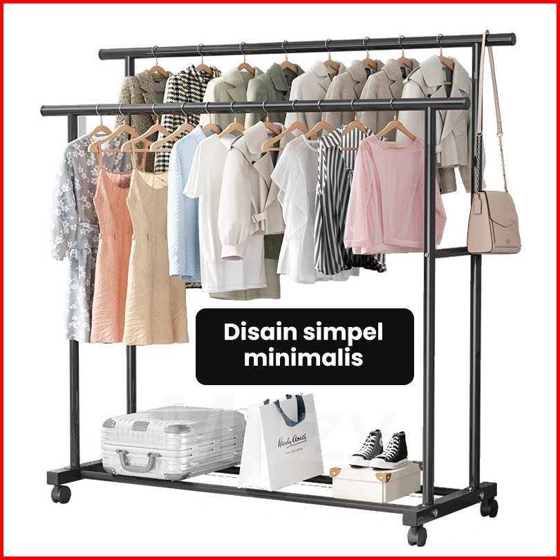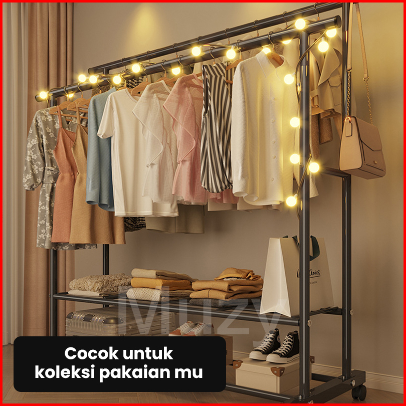 Muzy Stand Hanger Dengan 4 Roda Rak Serbaguna Rak Besi Gantungan Baju Pakaian Hsh135
