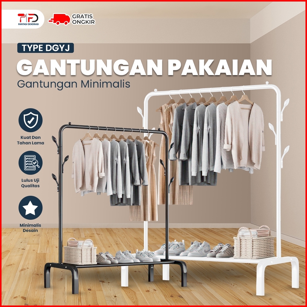 Stand Hanger Single Rak Gantungan Baju Pakaian Hanger Topi Tas Jemuran Besi Stand Hanger - Fantasidekorasi