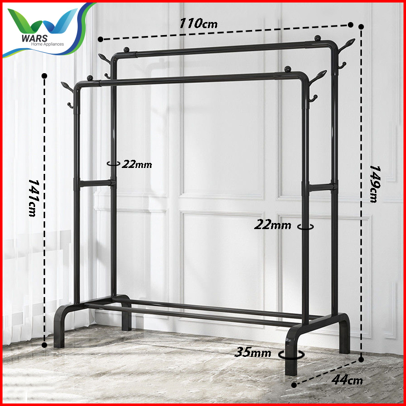 Wars Stand Hanger Double Pakaian Besar Bahan Besi Anti Karat