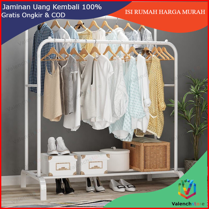 Rak Gantungan Baju Double Big Stand Hanger - Shenar Gantungan Baju Stand Hanger Gawang Double Rack