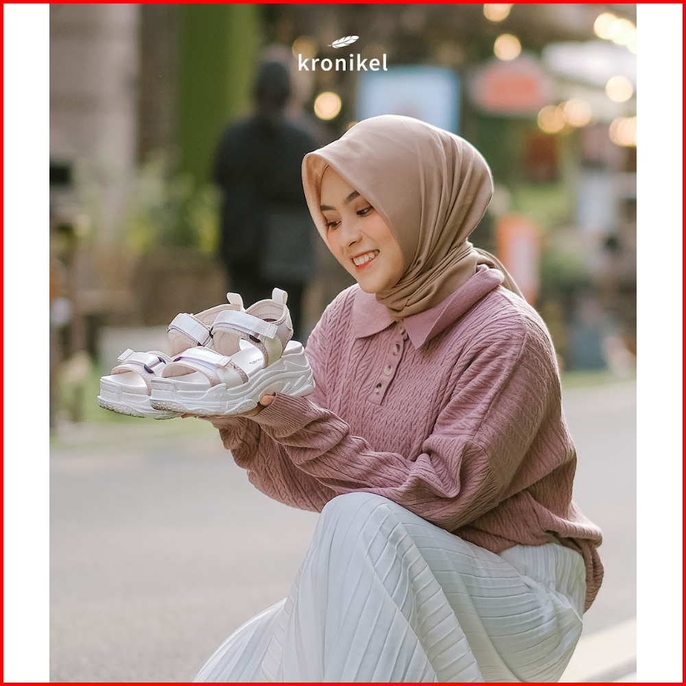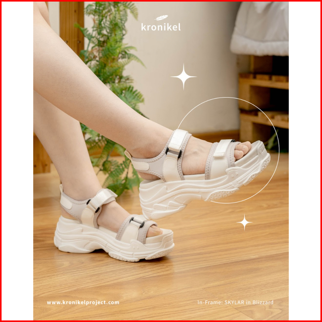 Kronikel Skylar Sandal Tinggi Tali Wanita Chunky Concert Sandal Putih Blizzard