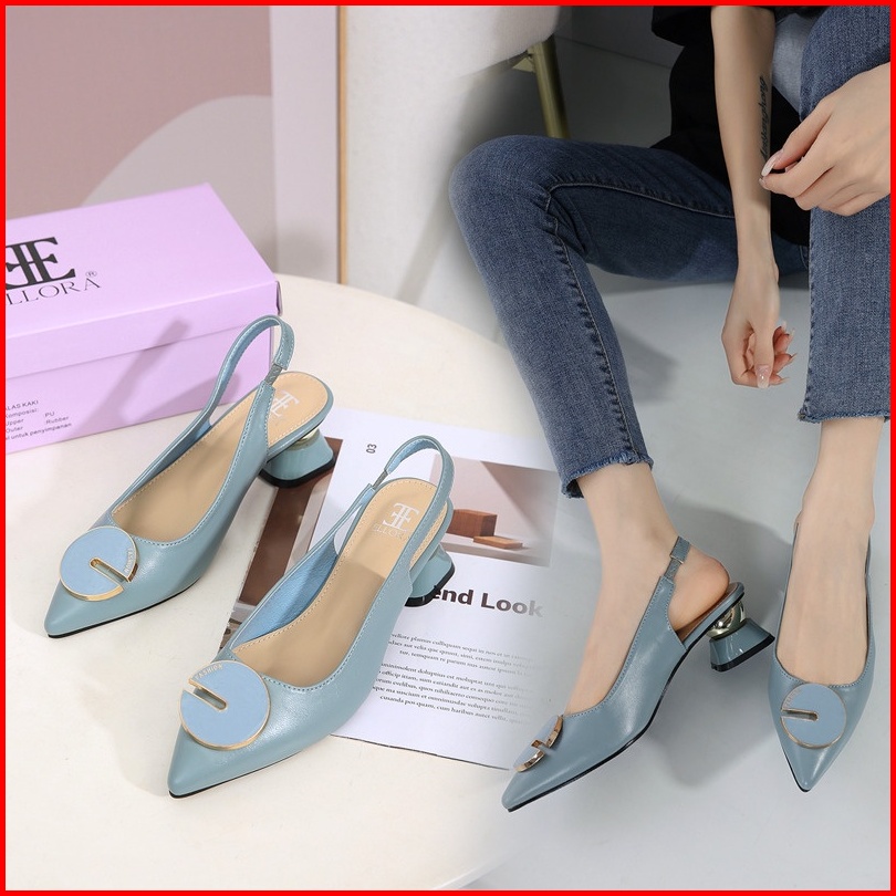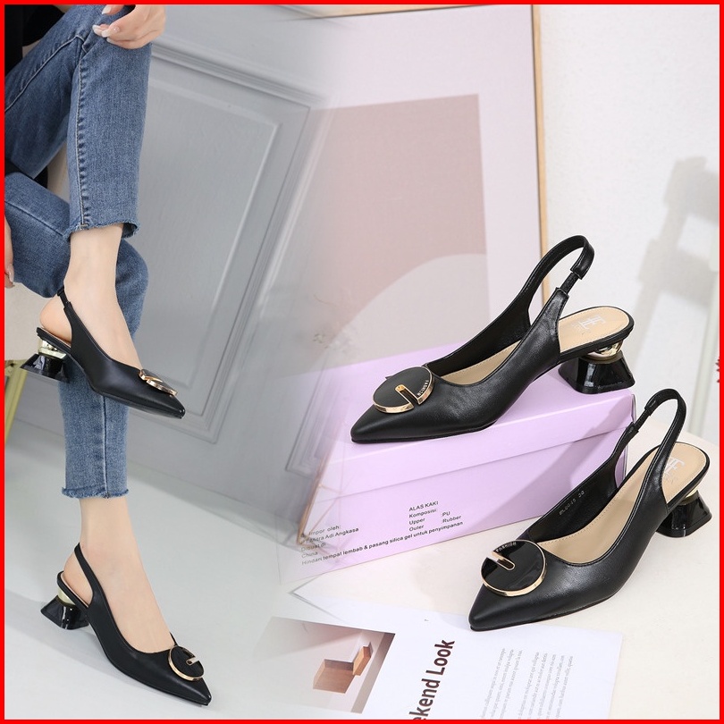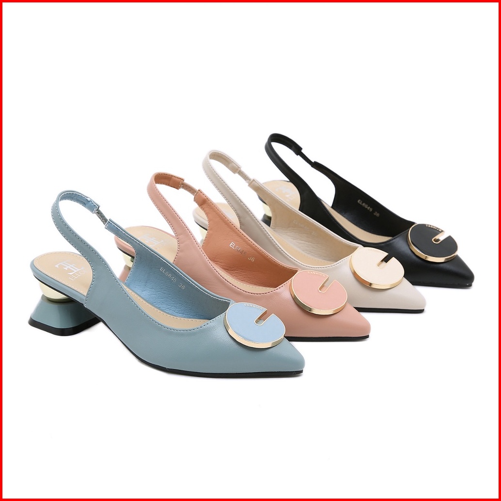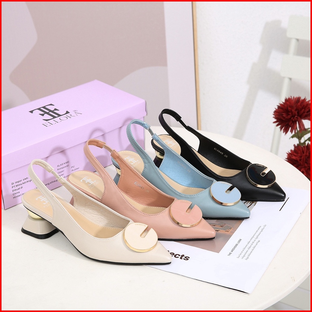 Ellora El-6645 Sepatu Wanita Hak Chunky Heels 5cm Slingback Import
