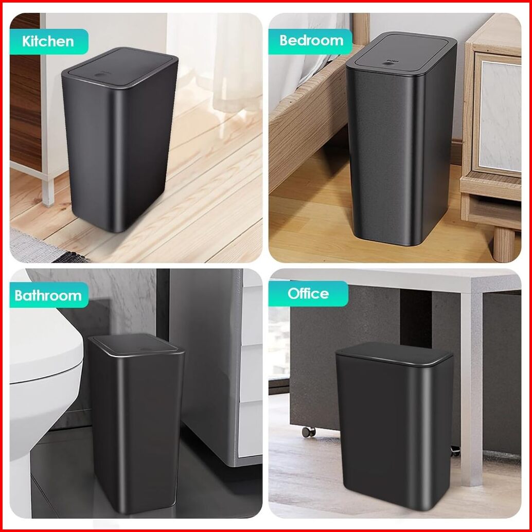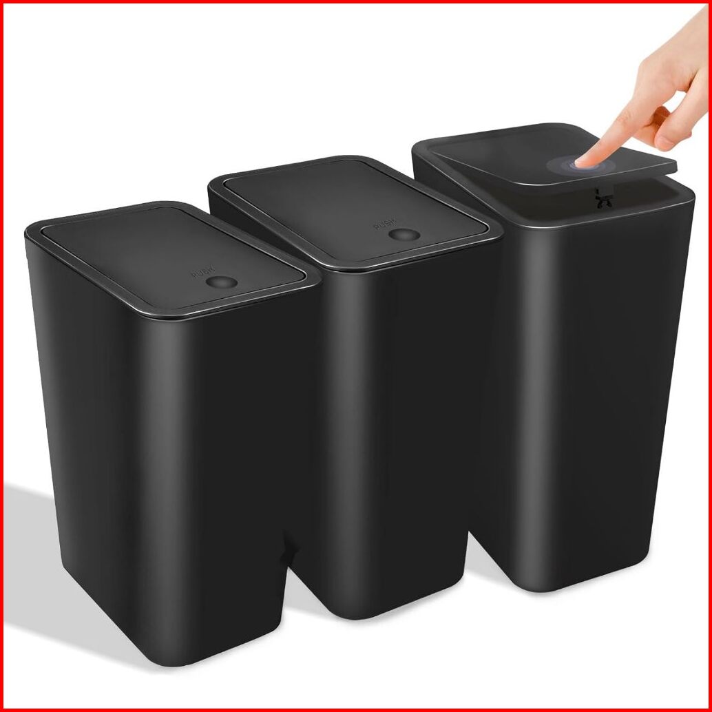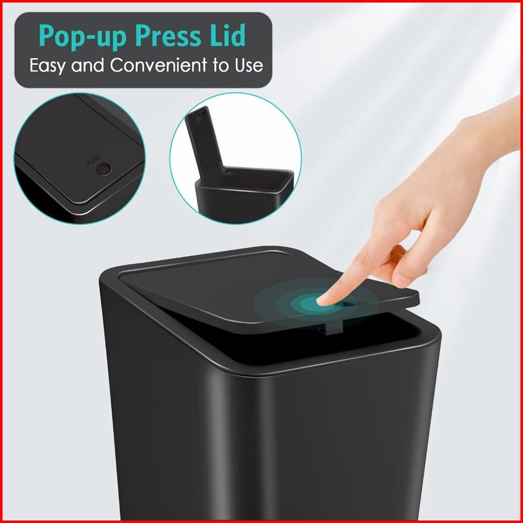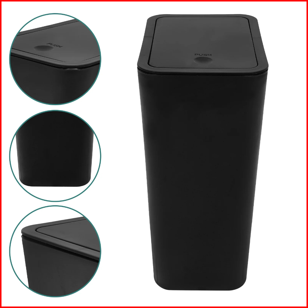 Tempat Wadah Sampah Estetik Dapur Kamar Mandi Tutup Model Tekan Press Trash Bin Smooth Opening Hitam