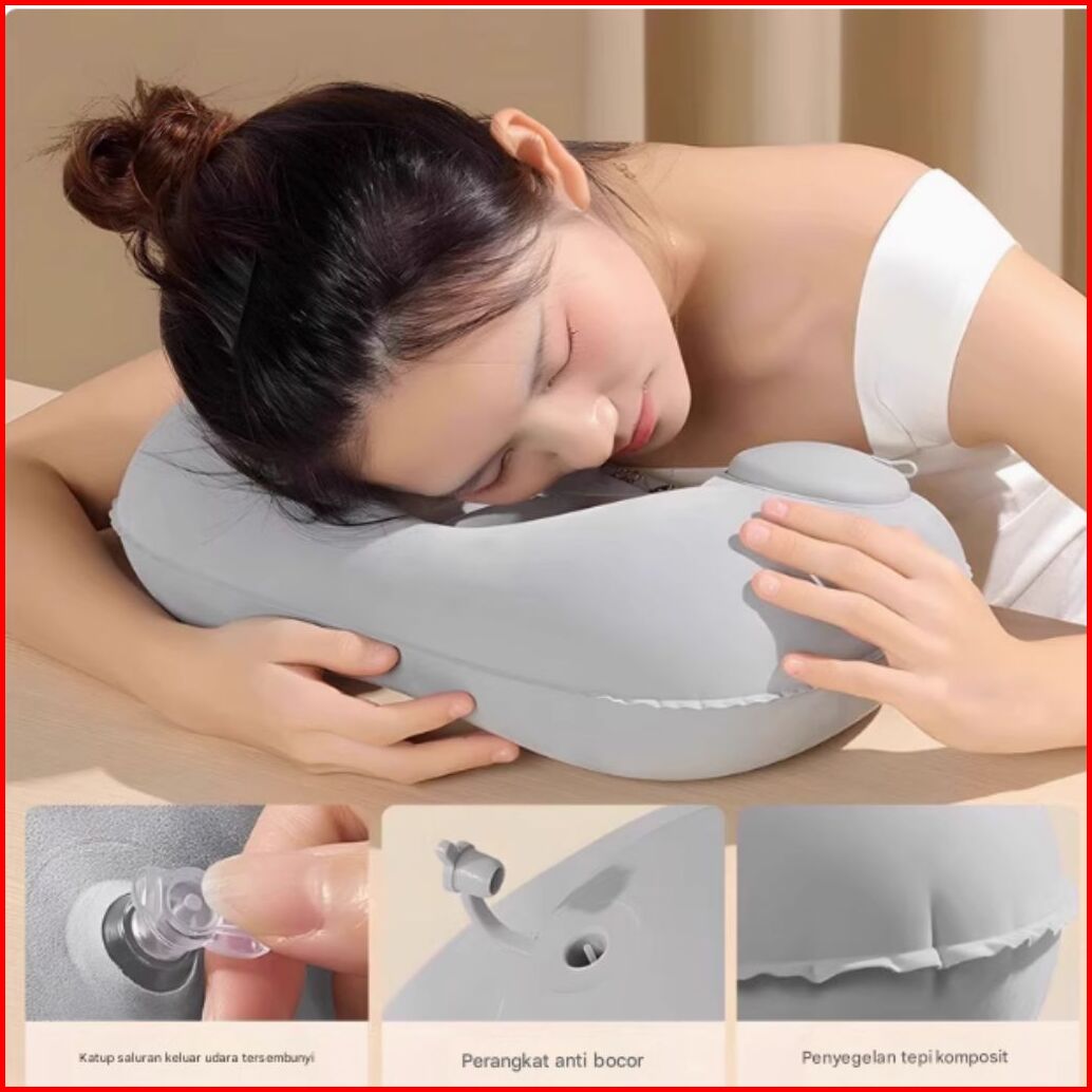 Bantal Leher U Lateks Alami Bantal Perjalanan Kantor Mobil Pesawat Nyaman Portabel