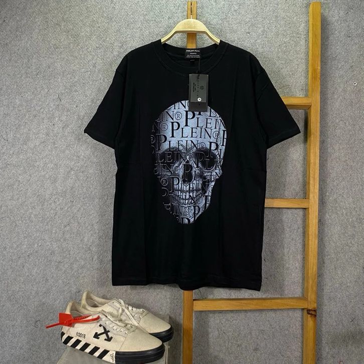 Kaos PHILIPP PLEIN SKELETON PLEIN HITAM T-shirt Oversize pria/wanita