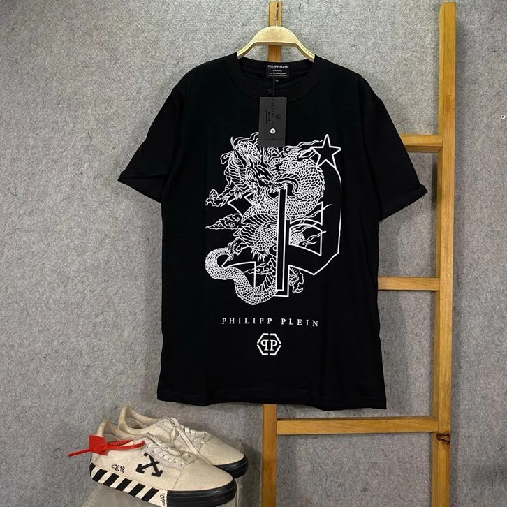 Kaos PHILIPP PLEIN DRAGON HITAM T-shirt Oversize pria/wanita