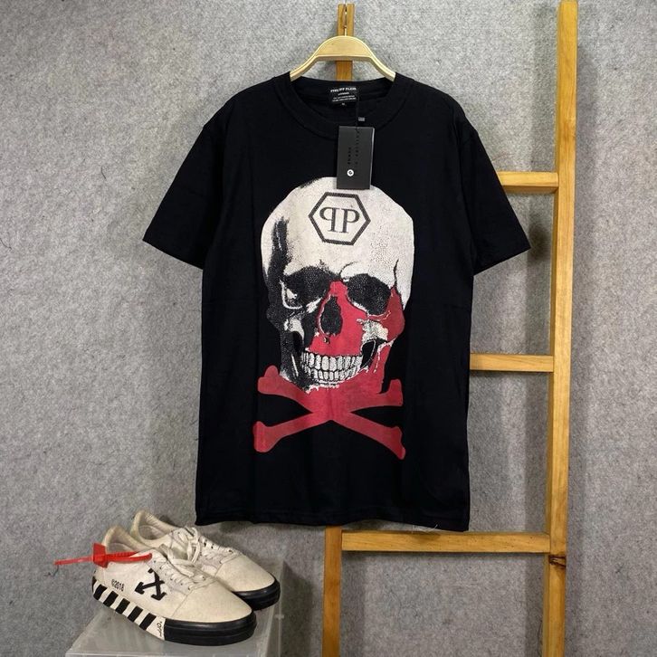 Kaos PHILIPP PLEIN X RED HITAM T-shirt Oversize pria/wanita
