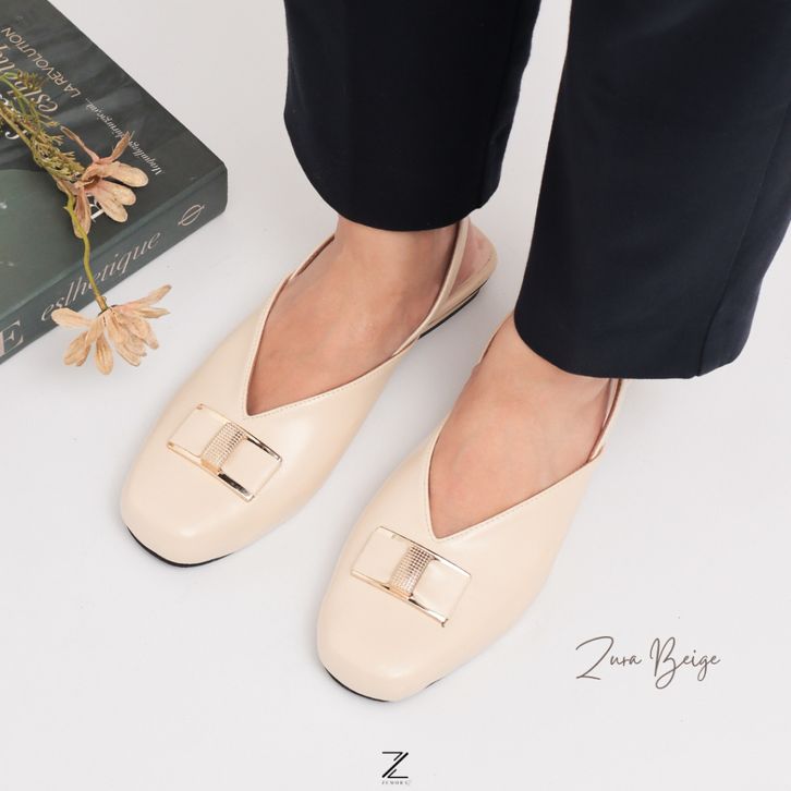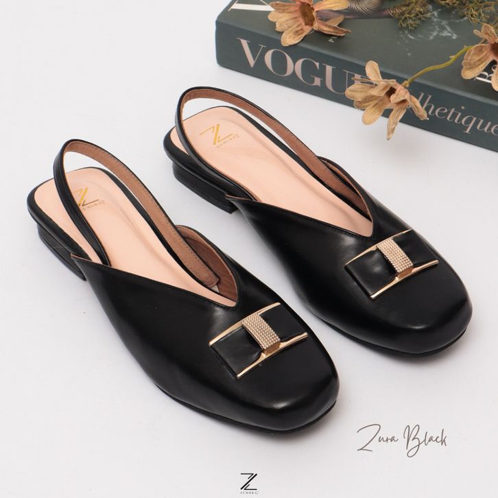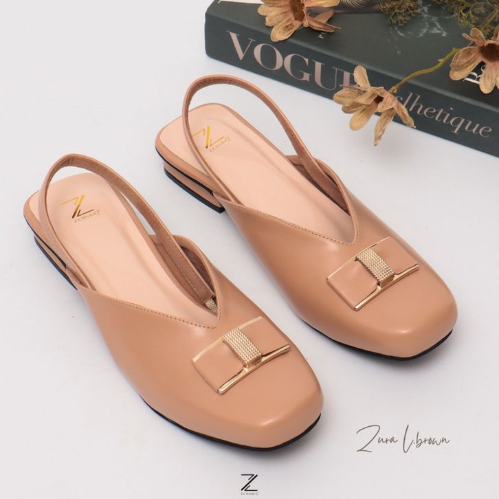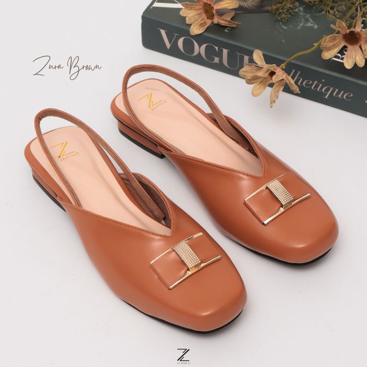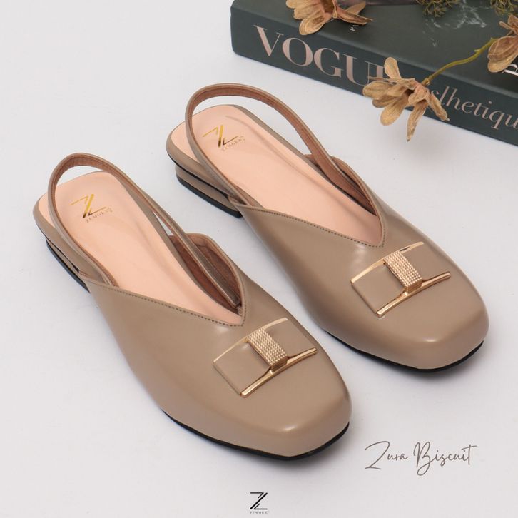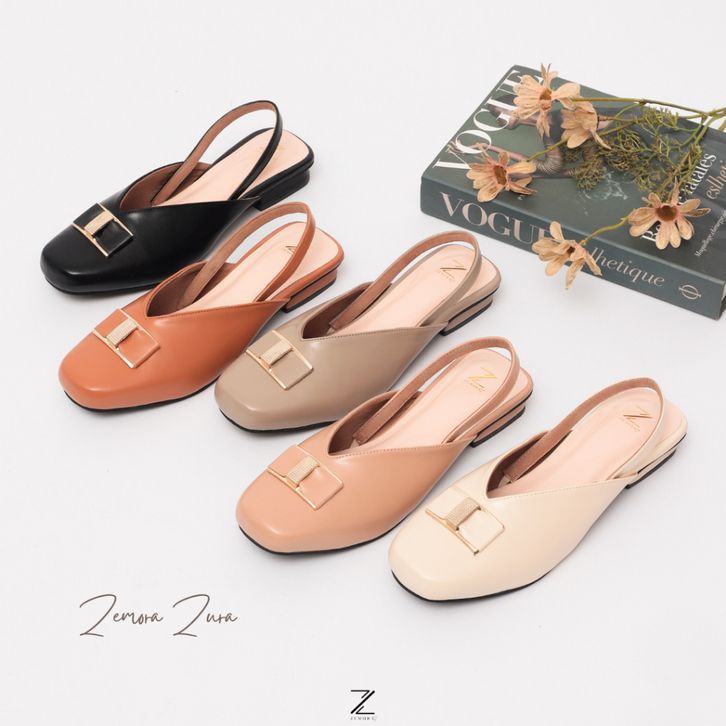ZURA SANDAL WANITA SLIP MULES SENDAL HEELS 2 CM FLAT FLAT SHOES WANITA KULIT SINTETIS PREMIUM KEKINIAN TERMURAH