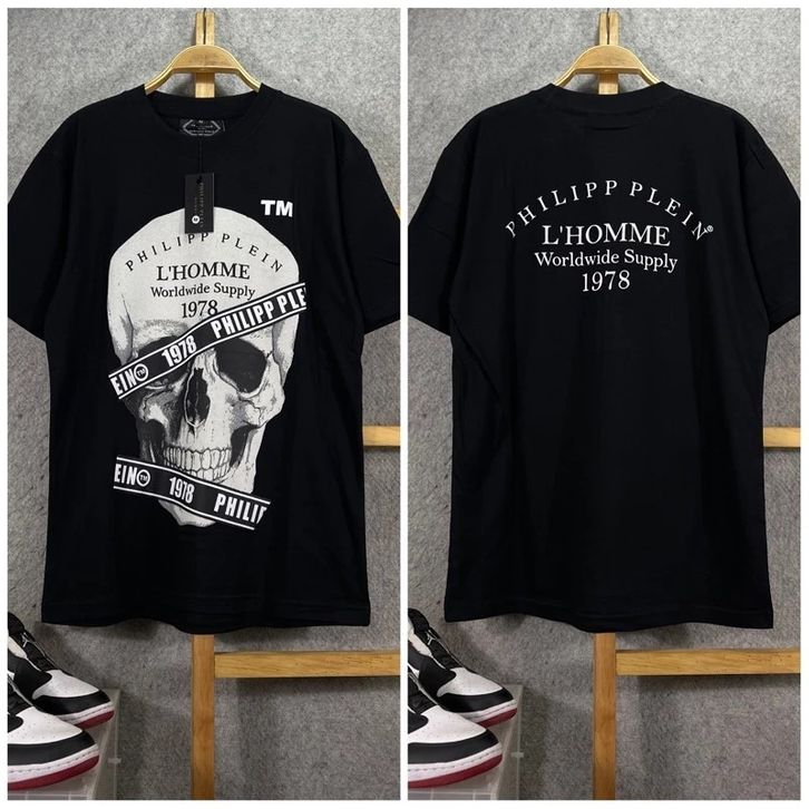 Kaos PHILIPP PLEINL L HOMME HITAM T-shirt Oversize pria/wanita