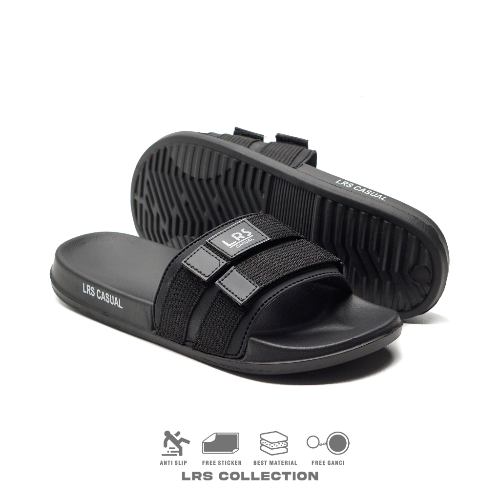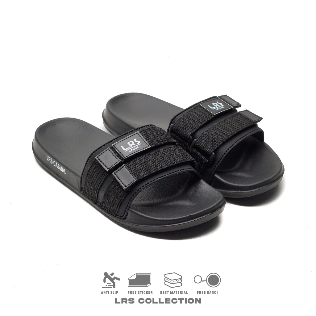 SANDAL PRIA MURAH SANDAL WANITA SLIDE SENDAL SLIP ON ANTI LICIN RINGAN SELOP GORKA HITAM LRS CASUAL