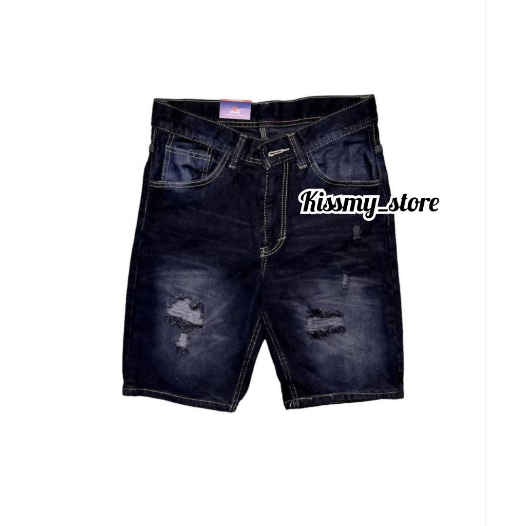 CELANA JEANS PENDEK PRIA WHISKER SOBEK CELANA COWOK