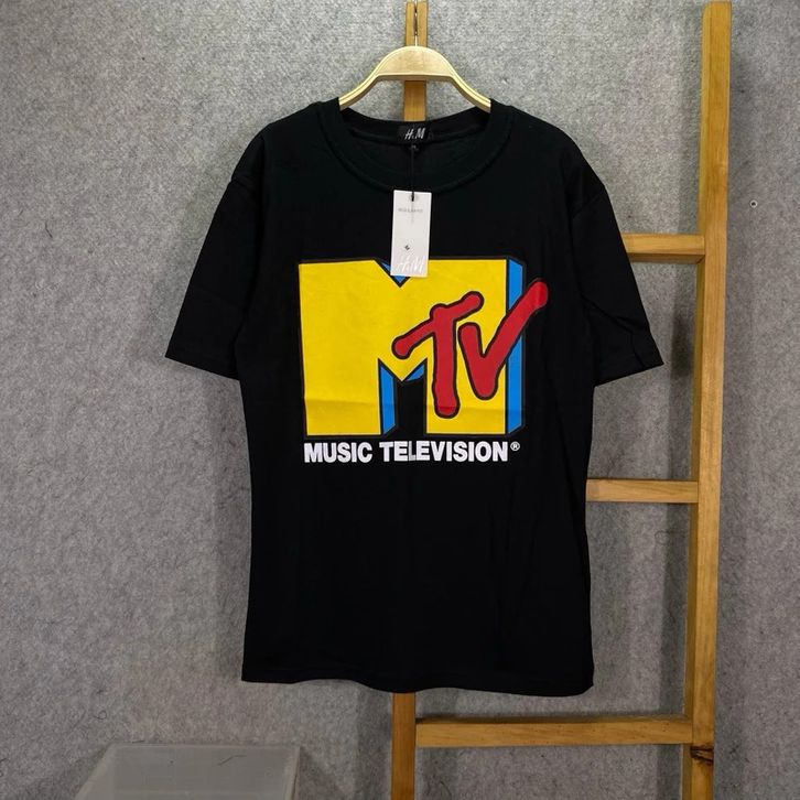 Kaos MTV MUSIC TELEVISION HITAM T-shirt Oversize pria/wanita