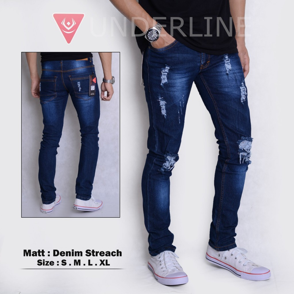 CELANA PANJANG PRIA JEANS SOBEK LUTUT//RIPEED JEANS TERBARU