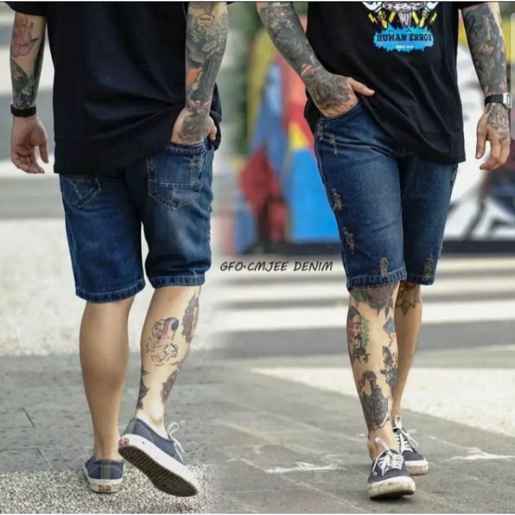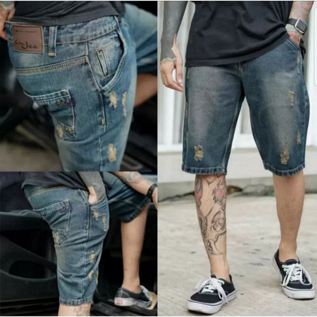 CELANA PENDEK JEANS SOBEK PRIA DEWASA CELANA SOBEK DISTRO NON STREACH CASUAL REGULER