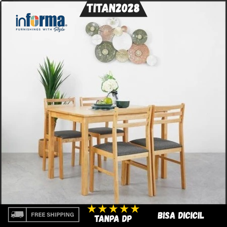 Informa Yericho Set Meja Makan 4 Kursi - Cokelat Muda Dining Table Dinner Table Meja Bangku Ruang Makan Aesthetic Furnit