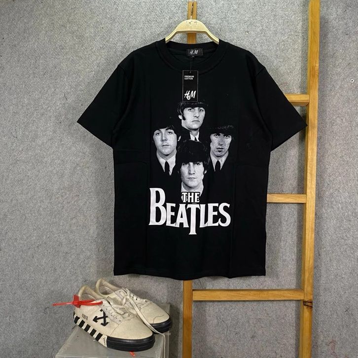 Kaos THE BEATLES GROUP HITAM T-shirt Oversize pria/wanita