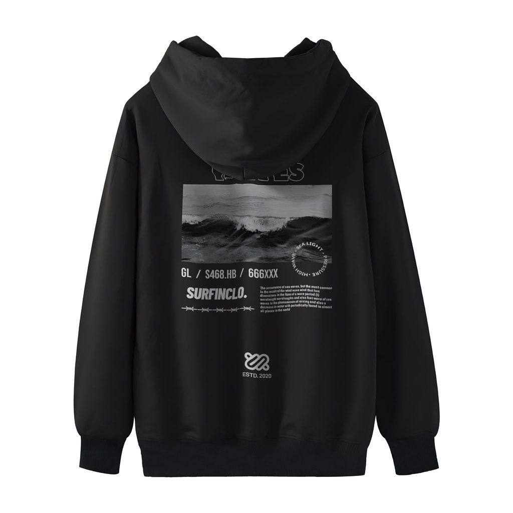 HOODIE JUMPER WAVES BAHAN KATUN FLEECE SIZE M L XL XXL