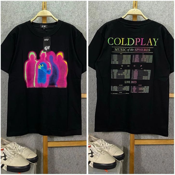 Kaos COLDPLAY MUSIC OF THE SPHERES HITAM T-shirt Oversize pria/wanita