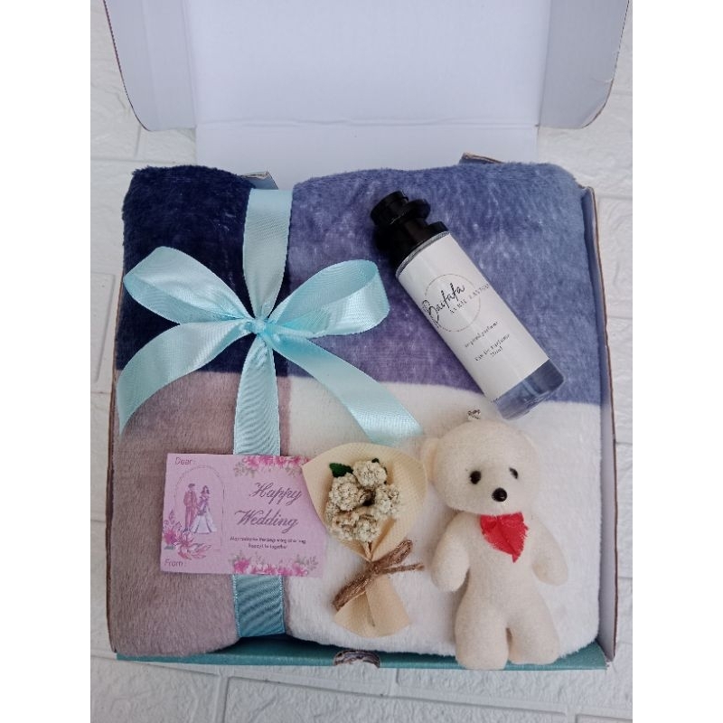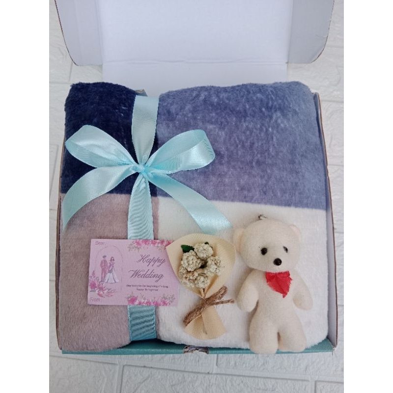 HAMPERS PERNIKAHAN | GIFT BOX SELIMUT PREMIUM 140X190 HALUS LEMBUT | HAMPERS WEDDING | KADO PERNIKAHAN
