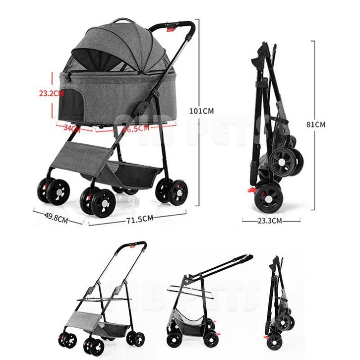 3-IN-1 PET STROLLER ANJING KUCING DAPAT DILIPAT DAN DILEPAS KERETA DORONG HEWAN PELIHARAAN ANJING KUCING