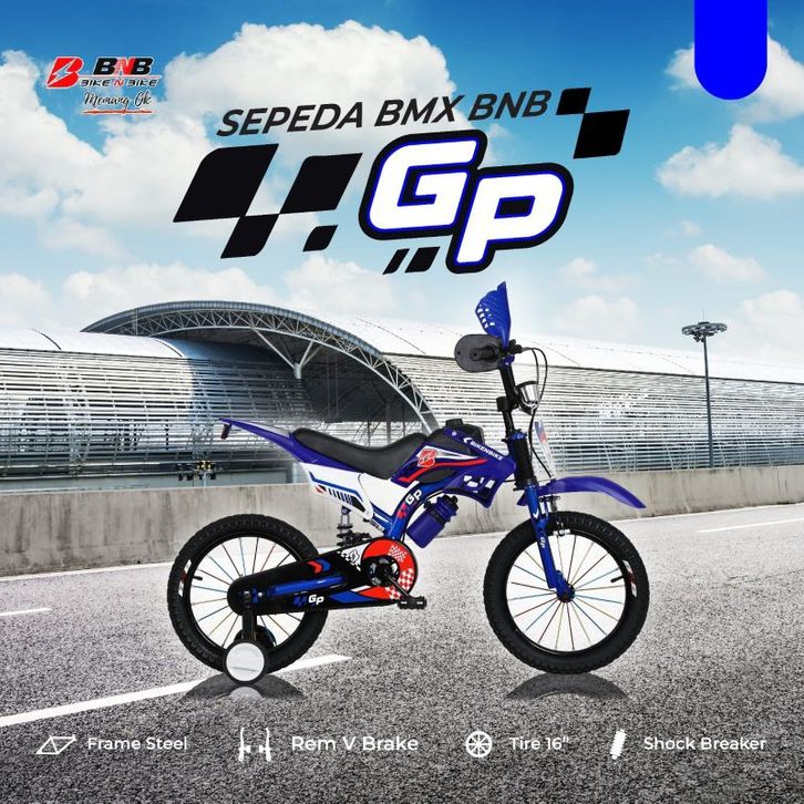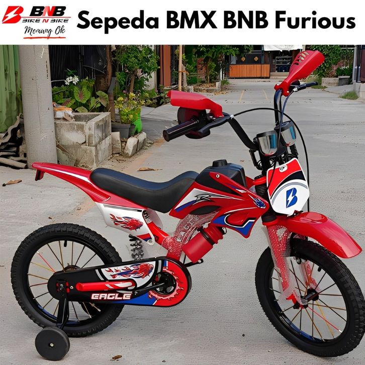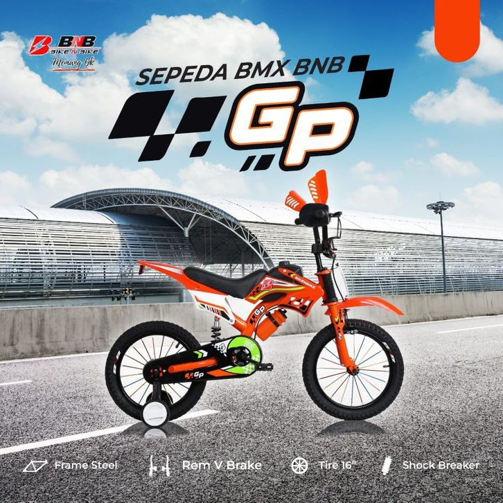 SEPEDA ANAK LAKI LAKI BMX BNB TRAIL GP, Ukuran 12 & 16 inch (Model Motor Cross Trail, Suara Brrr)