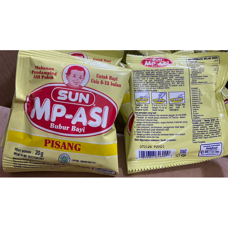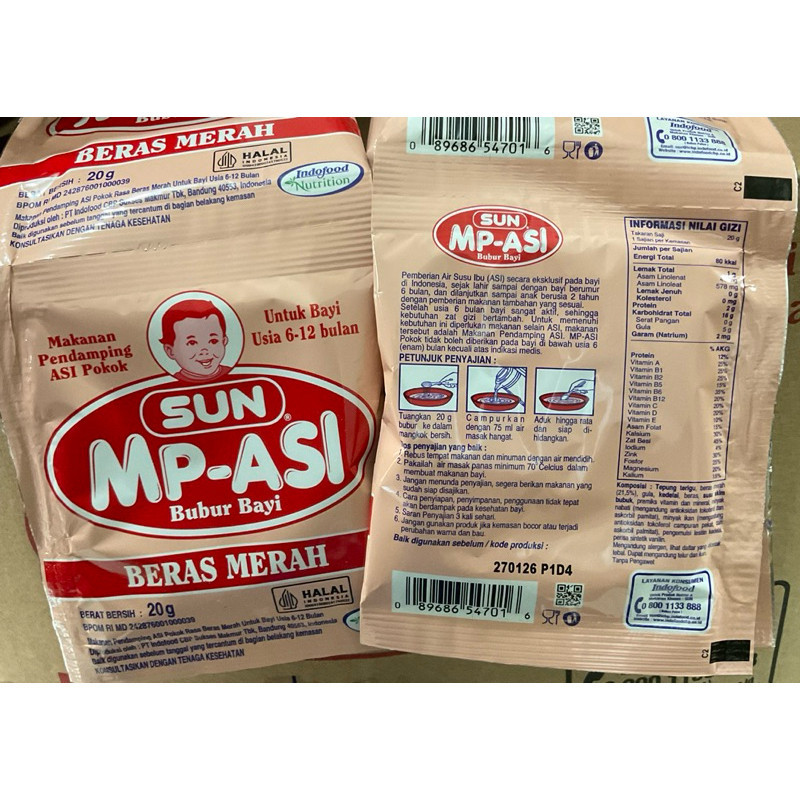 SUN Beras Merah 20g, SUN Kacang Hijau 20, SUN Pisang Susu 20g, SUN Ayam Kp Bayam20g, SUN Ubi Ungu 20g, SUN MPASI B.merah20g, SUN MPASI PISANG20g, SUN MPASI K.HIJAU20g