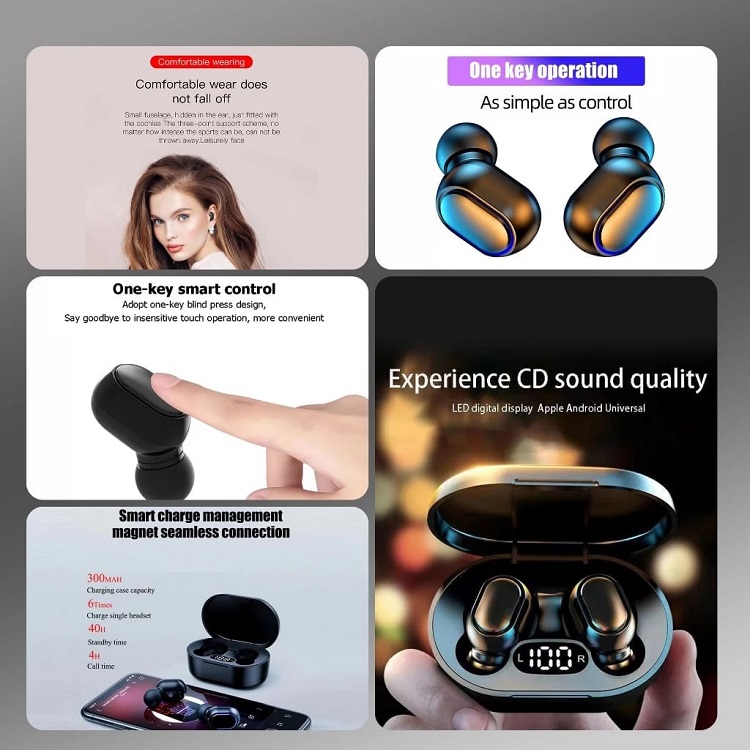 TWS Earphone Bluetooth Wireless Earbuds Digital Click Button LED Display Waterproof Jovitech T10