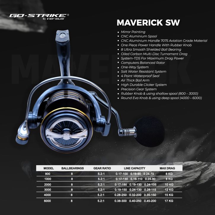 Gostrike Versus Maverick SW 8 BB Reel Pancing Power Handle With Rubber Knob And Round Eva Knob