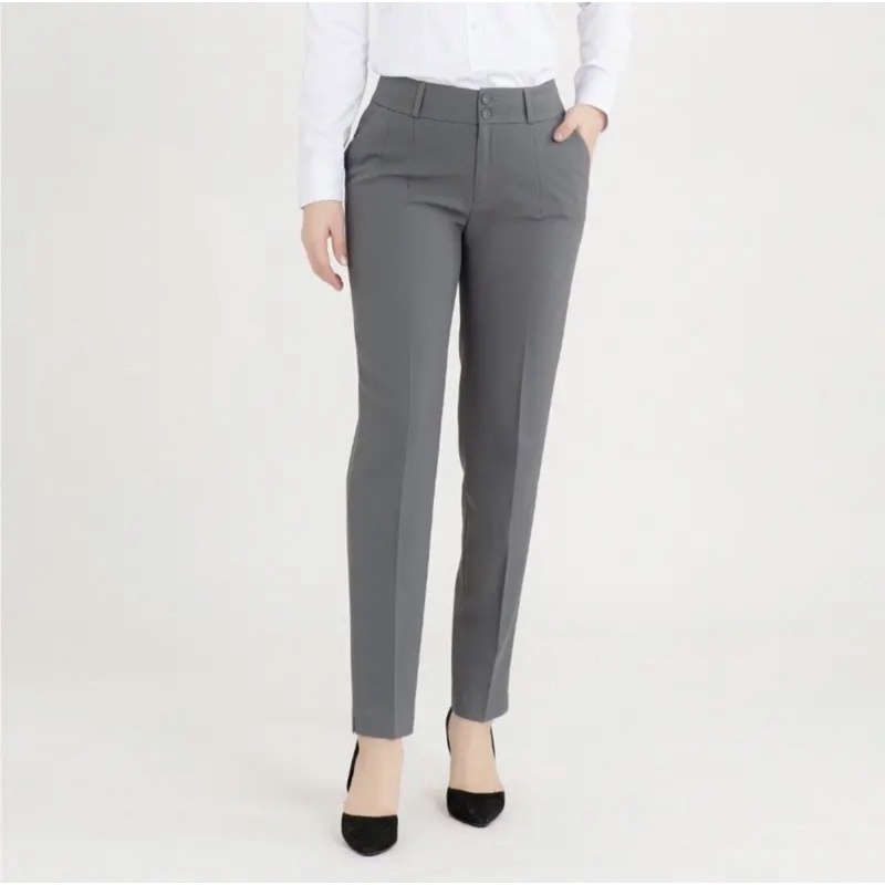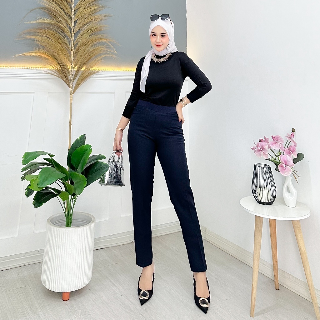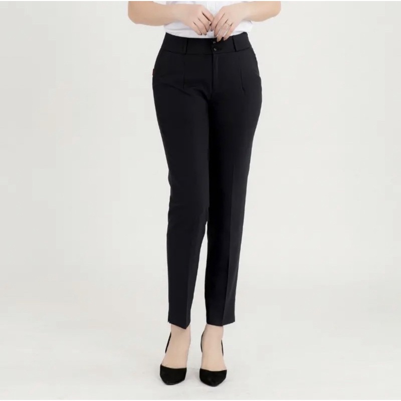 (Gratis Ongkir) CELANA KAIN WOLL// CELANA KERJA WANITA MODEL PINGGANG KARET DAN RESLETING KANCING