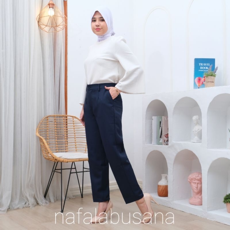 (Gratis Ongkir) Celana Kerja Wanita Highwaist Pinggang Karet Belakang Bahan Dasar Kain Kantor Formal