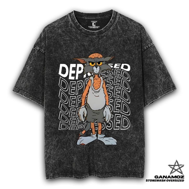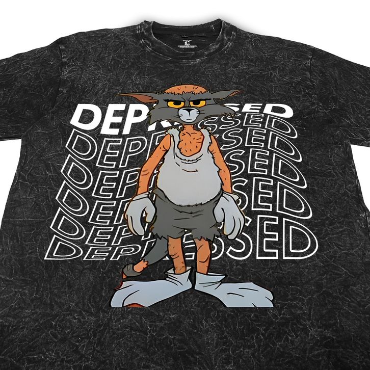 Kaos Kartun Tom & Jerry DEPPRESED TOM Stone Wash Oversize Unisex T-shirt