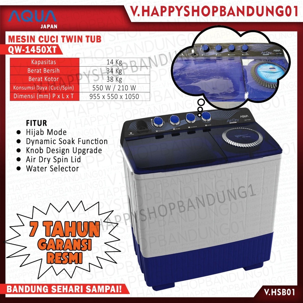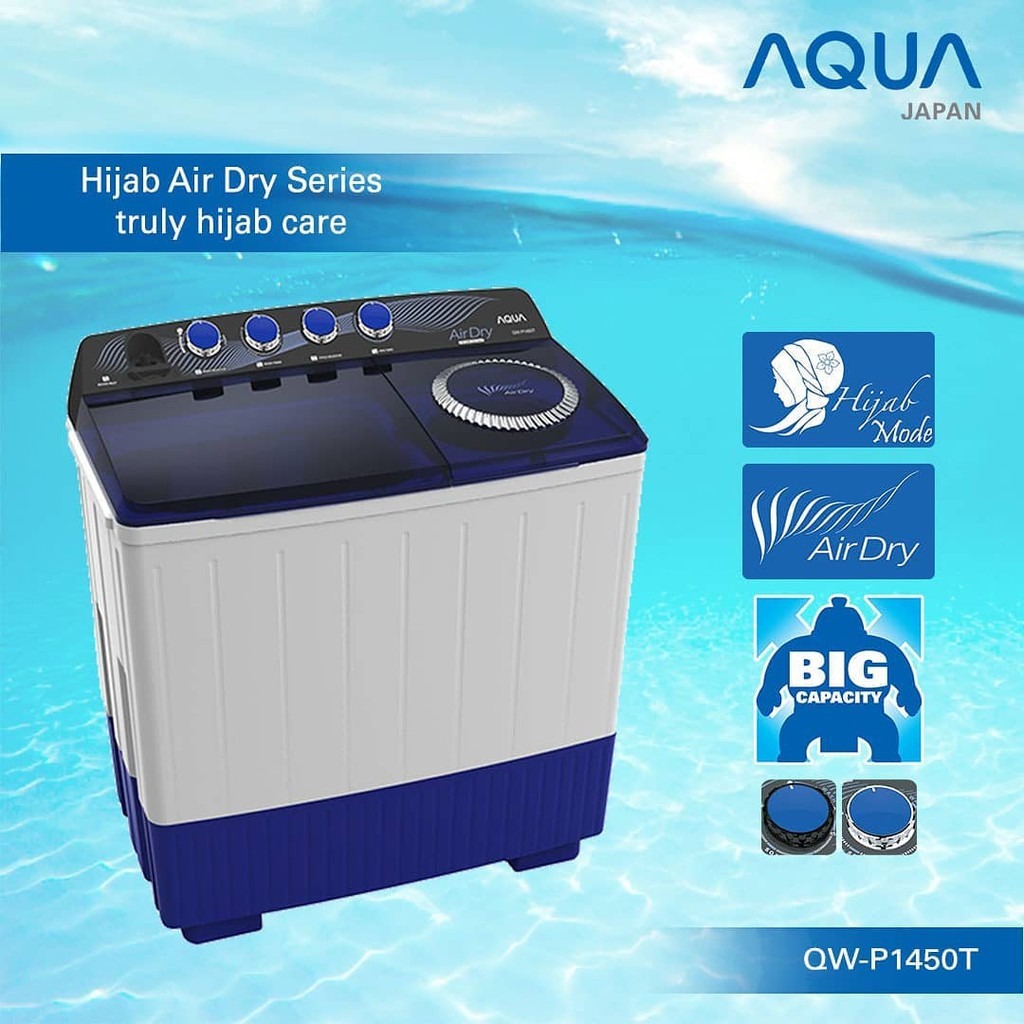 MESIN CUCI AQUA SANYO 2 TABUNG mesin cuci 2 tabung AQUA 14 kg - QW P 1450 T - HIJAB SERIES