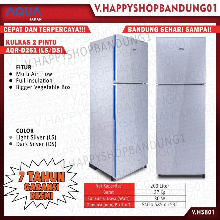 KULKAS AQUA 2 PINTU 203 Liter AQR-D261 DS/LS Garansi Resmi