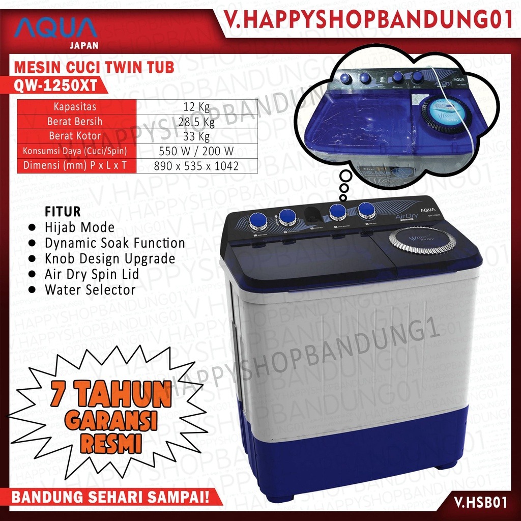 mesin cuci 2 tabung aqua japan sanyo 12kg type QW 1250 / 1260 XT