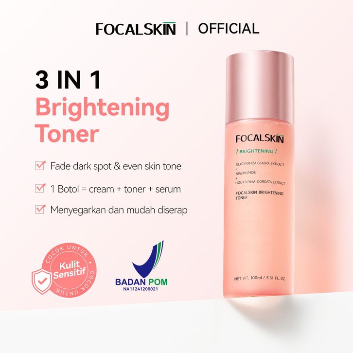 FOCALSKIN 3 IN 1 Brightening Toner Watery Moisturizer Serum Toner Glycyrrhiza glabra + Niacinamide Day Cream Fade Dark