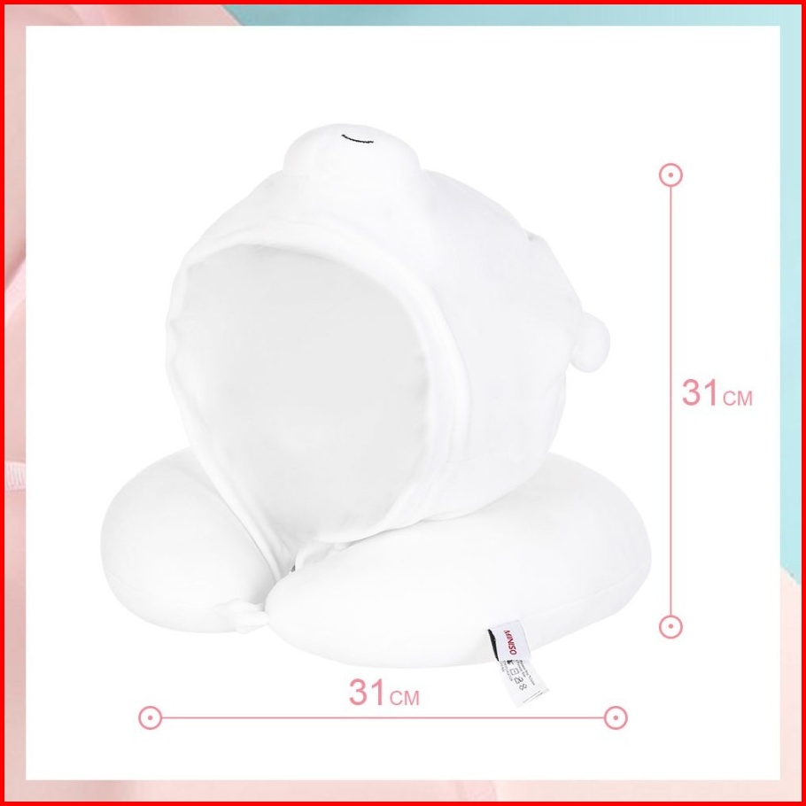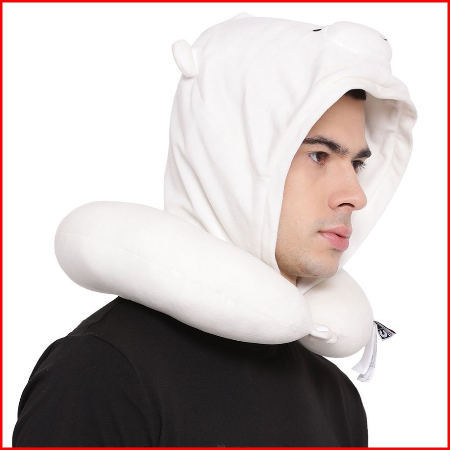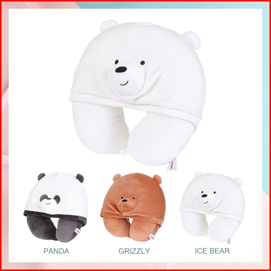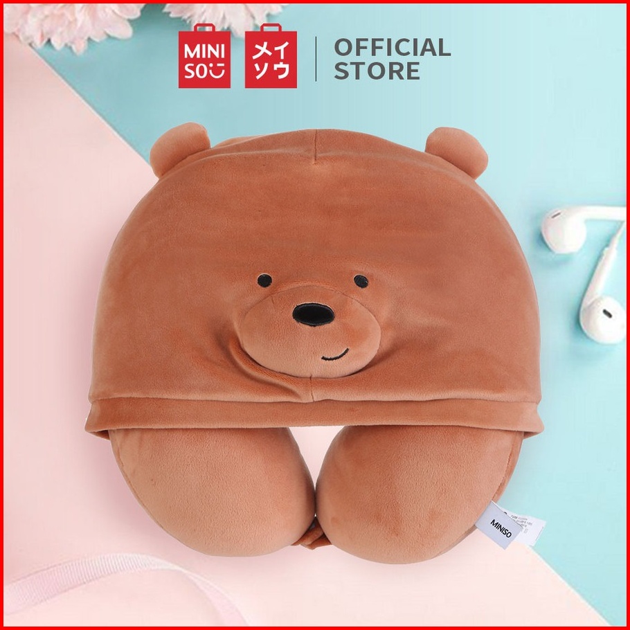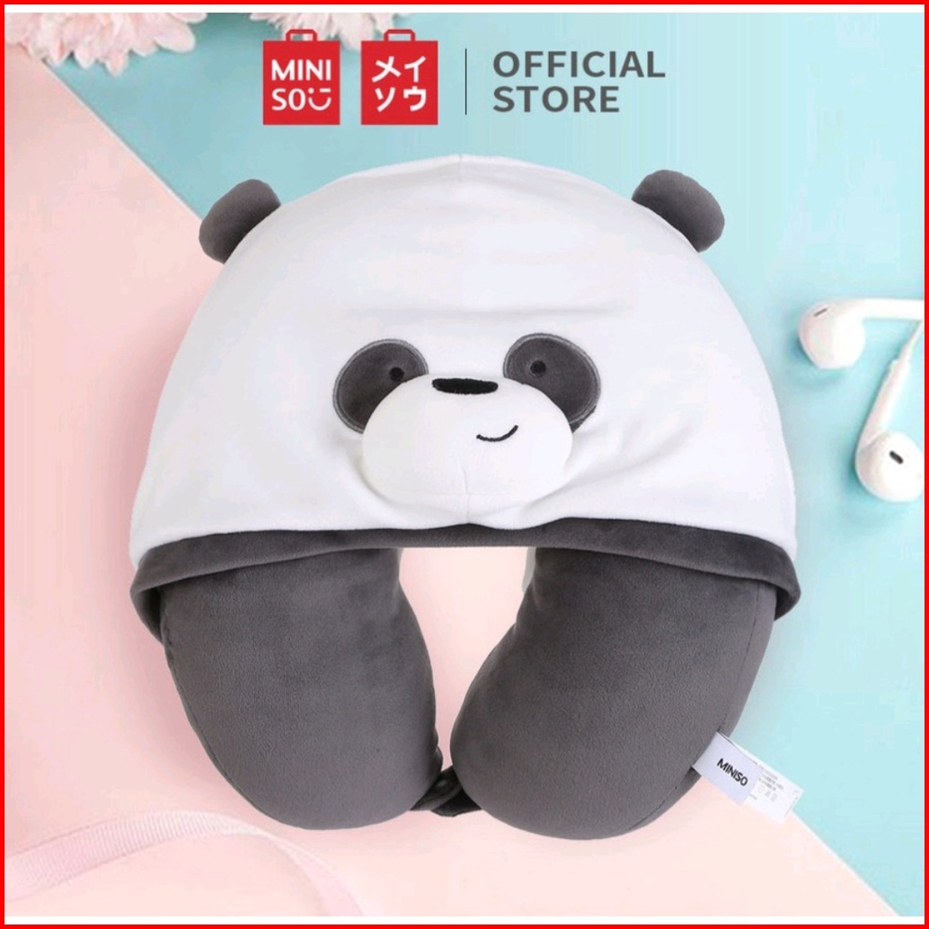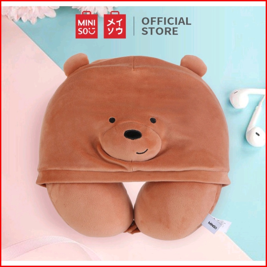 Miniso We Bare Bears U-shaped Pillow With Hoodie Plus Bantal Leher Topi Tudung