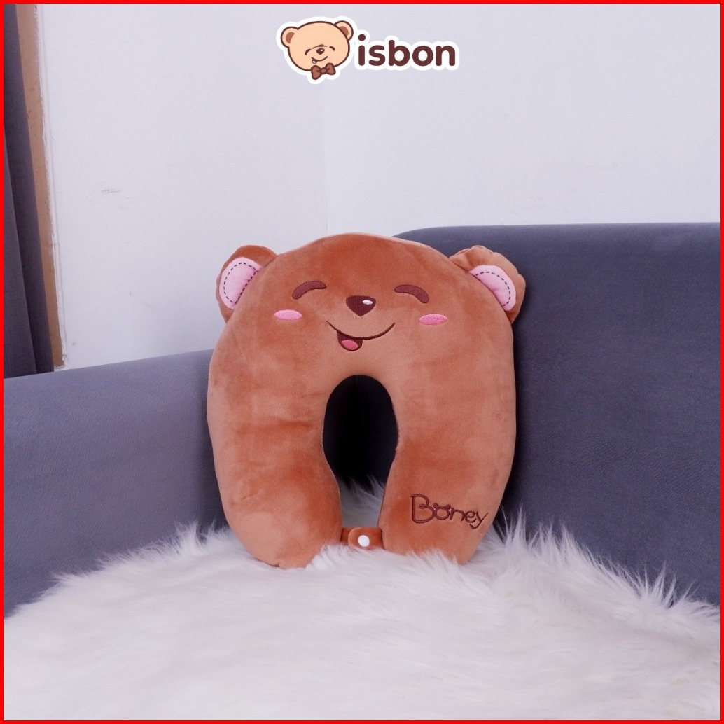 Bantal Leher Dewasa Bordir Boney Travel Pillow Istana Boneka Neckrest Bordir Comfy Nyaman Untuk Traveling Jarak Jauh