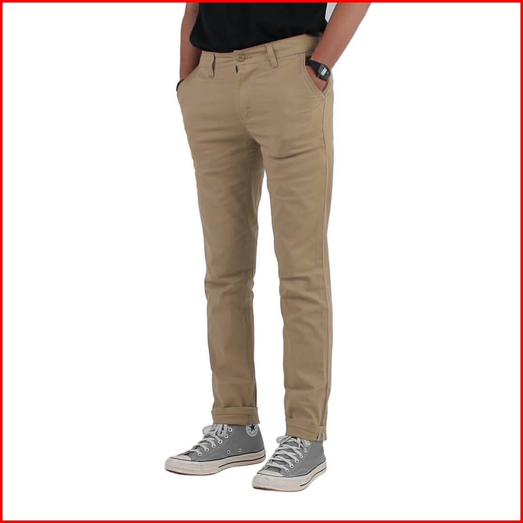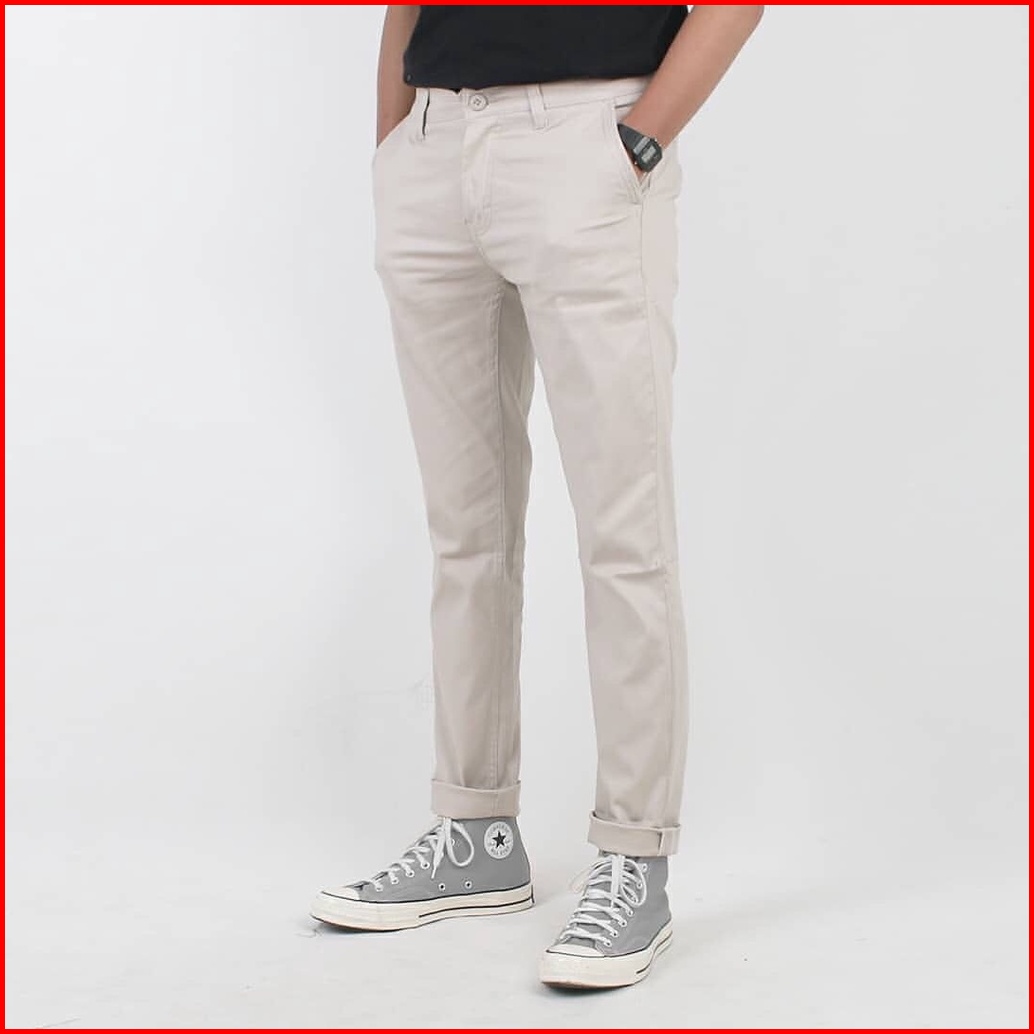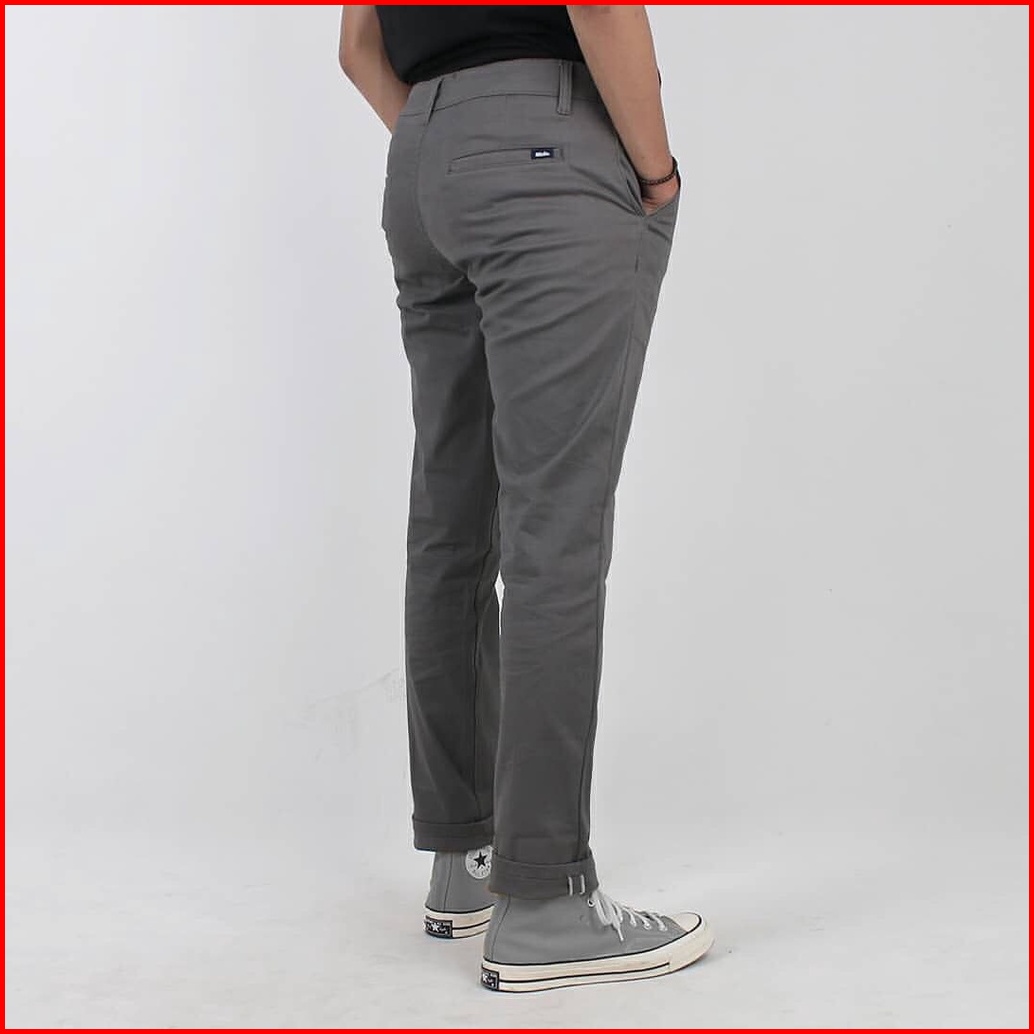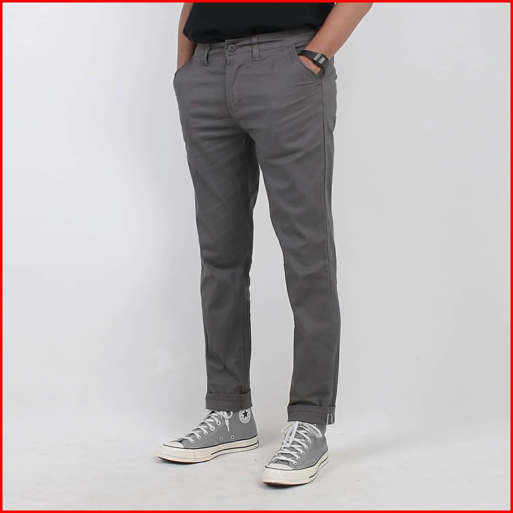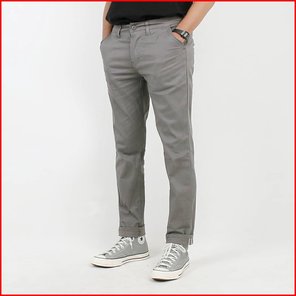 Celana Chino Pria Bahan Katun Twill Ukuran 28-33 Warna Dark Grey