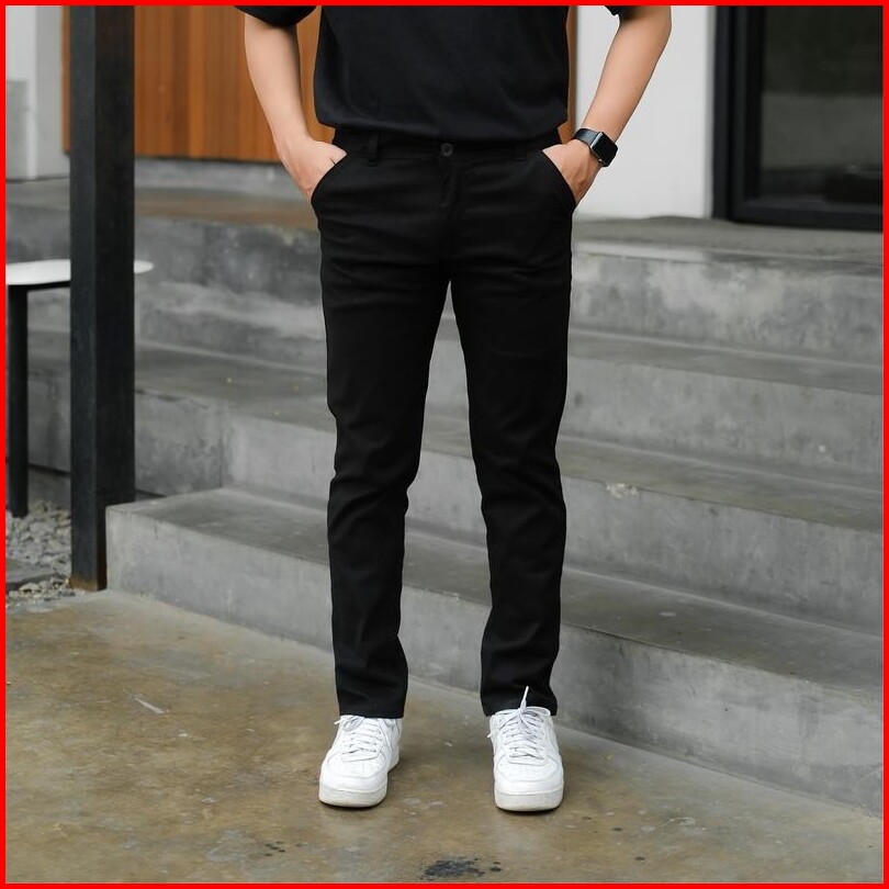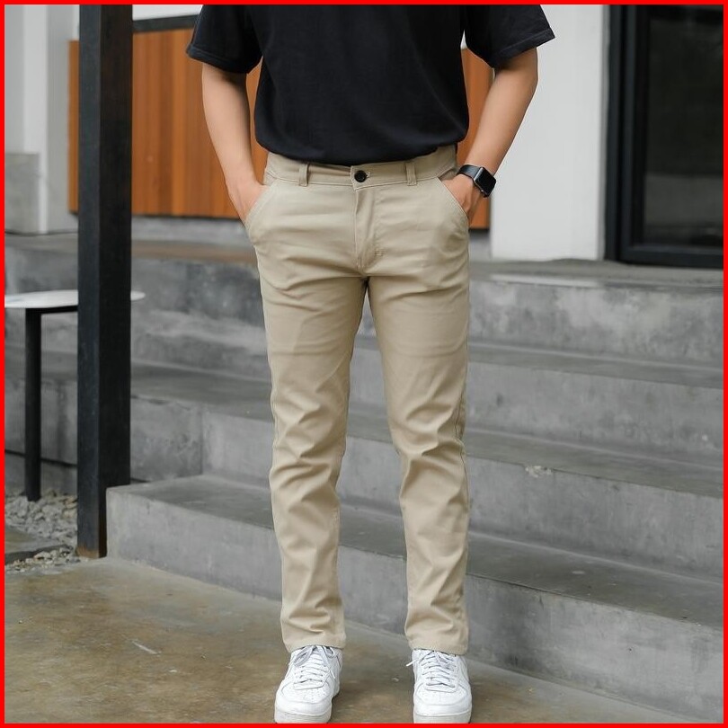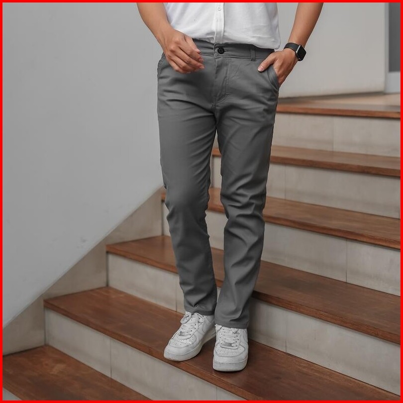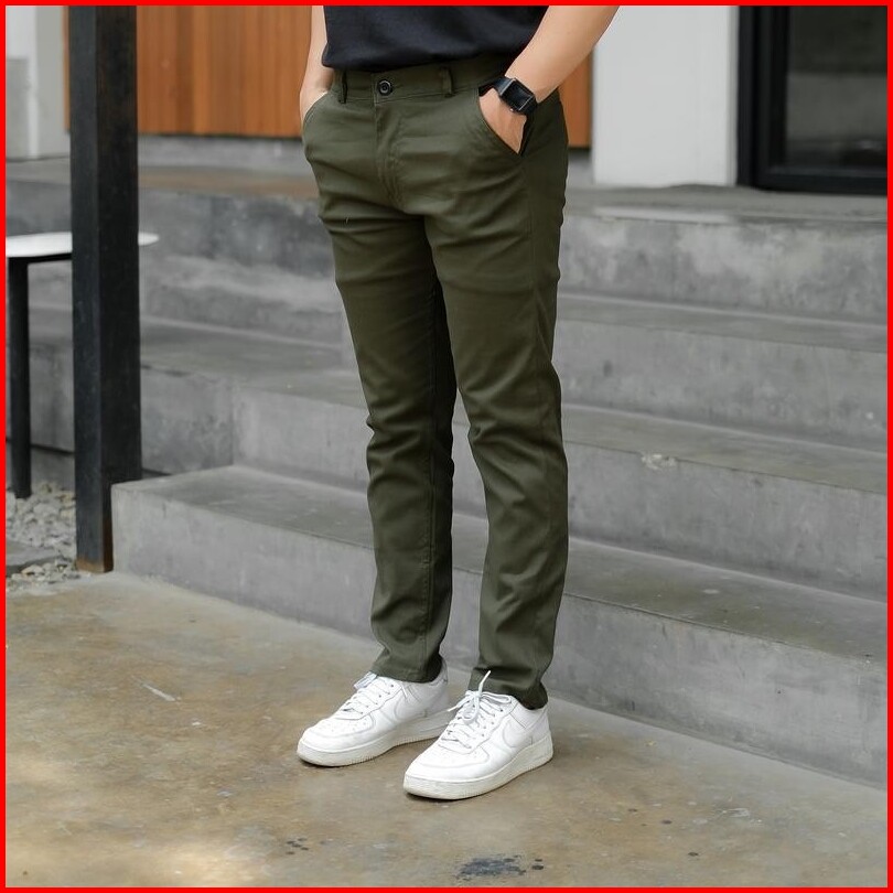 Arzanka - Celana Chino Panjang Polos Pria Slimfit Bahan Stretch