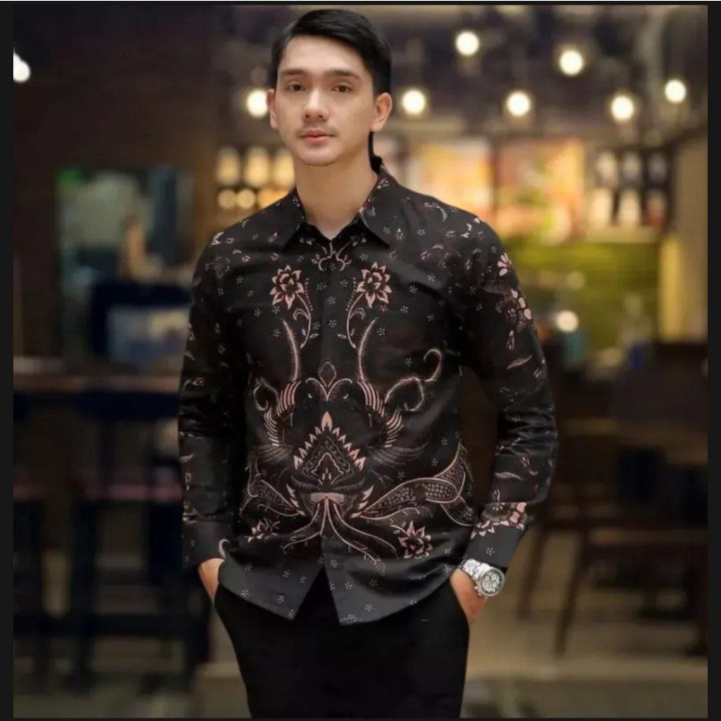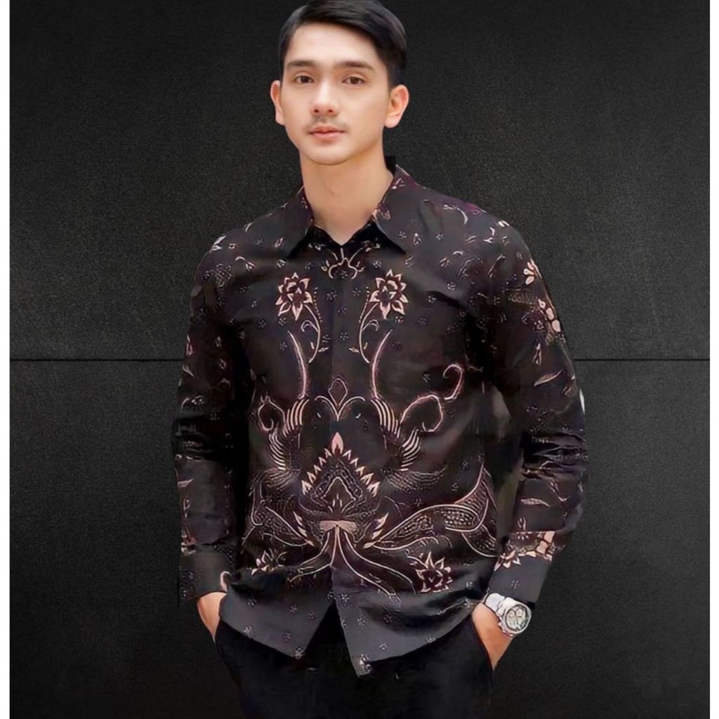 KEMEJA BAJU BATIK PRIA LENGAN PANJANG PRIA COWO COWOK BORDIR SOGAN HRB026 MODERN