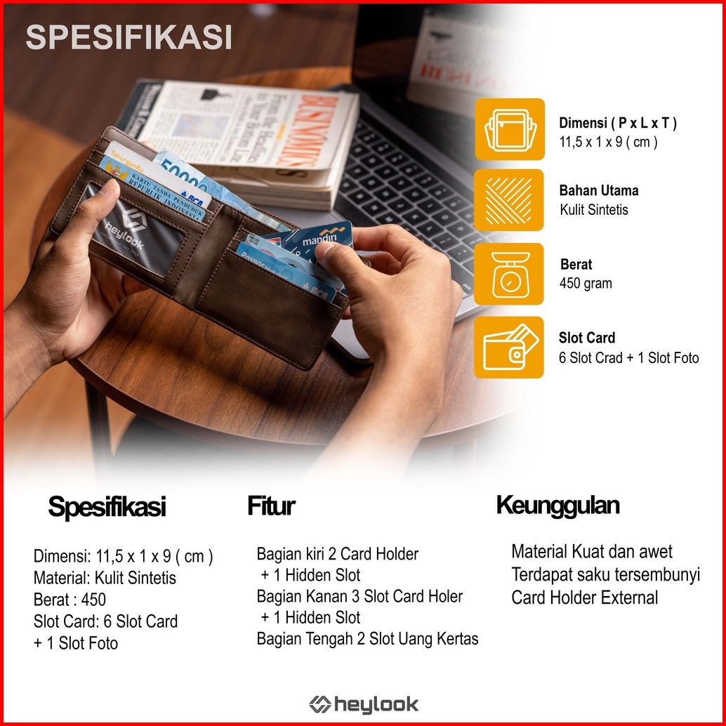 Heylook Project- Dompet Pria Trafford Dompet Kulit Pria Dompet Pendek Dompet Lipat Uang Dompet Stnk Dompet Kartu Water R