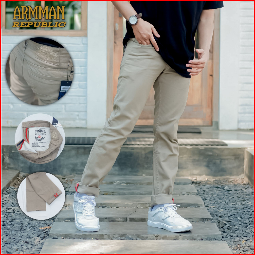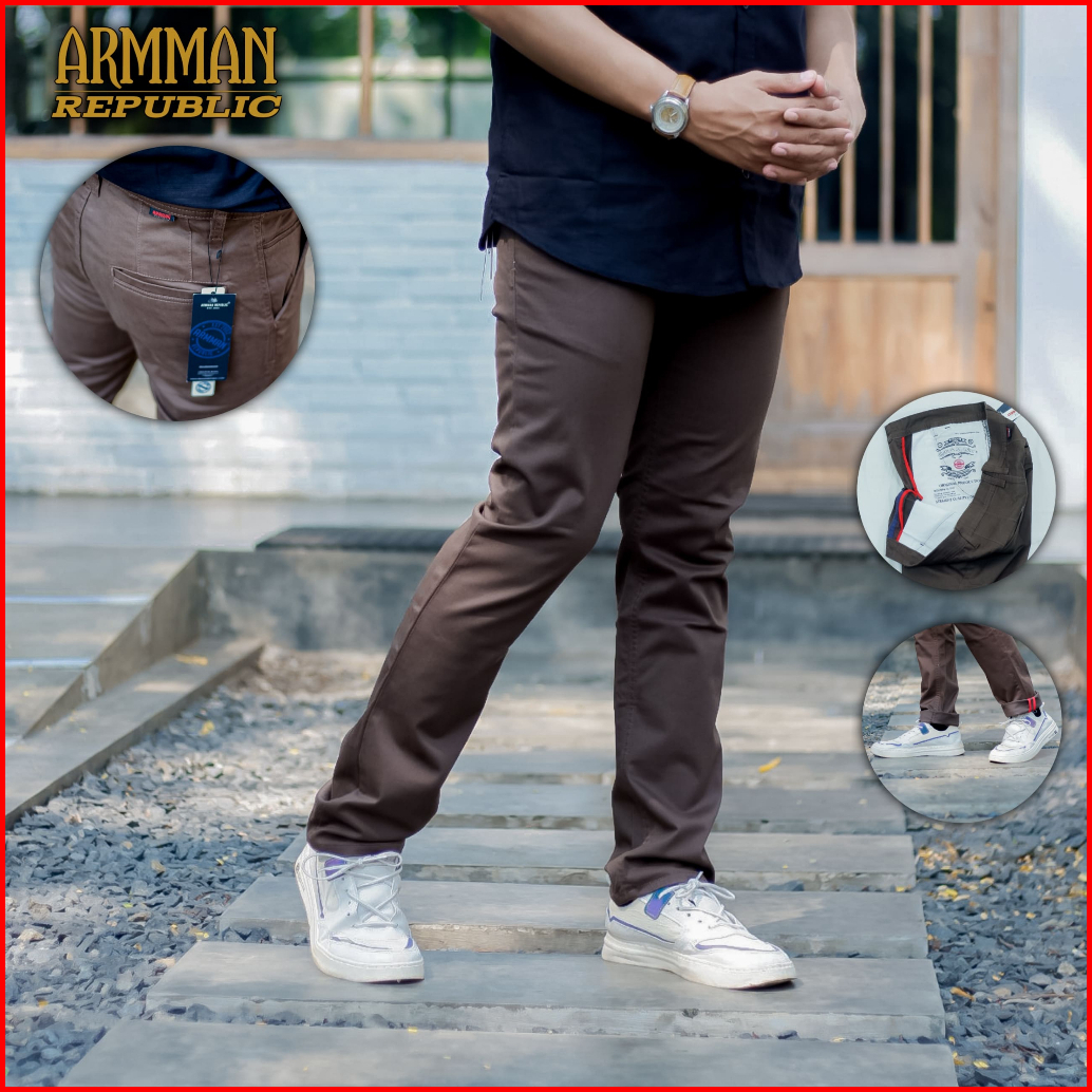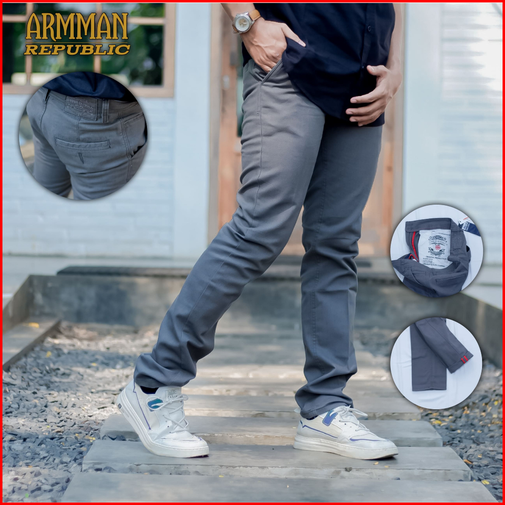 Celana Chino Panjang Pria Slimfit Kerja Harian Santai Casual Formal Hitam Abu Cream Mocca Size 27-45