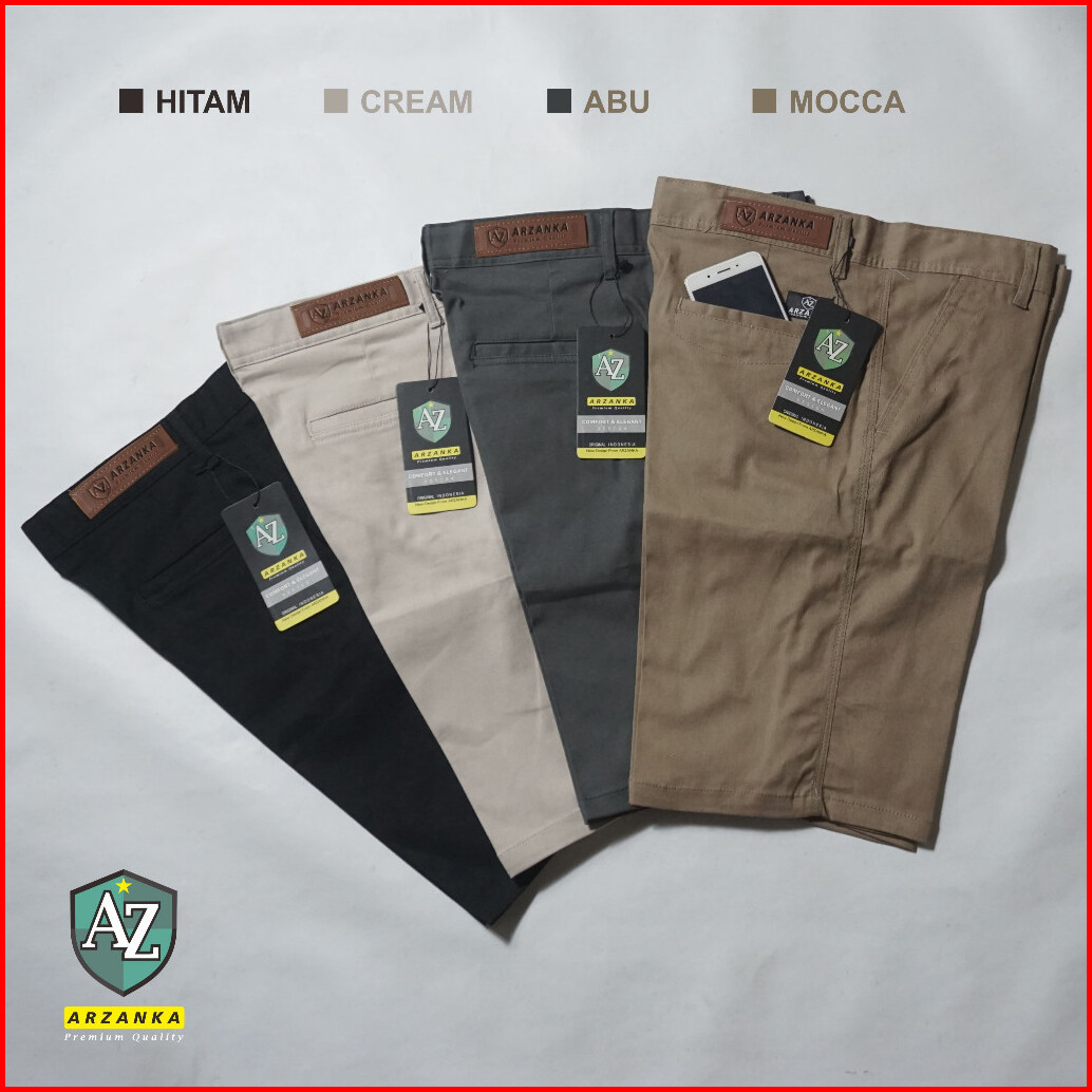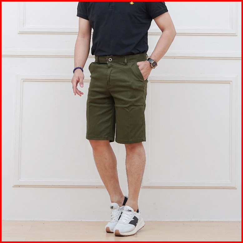 Arzanka - Celana Chino Pendek Hijau Army Pria Distro Bahan Katun Stretch